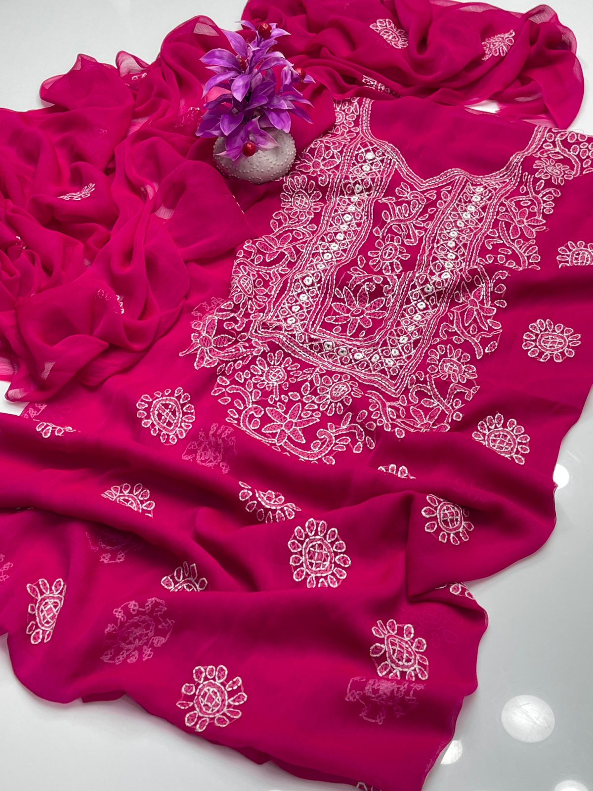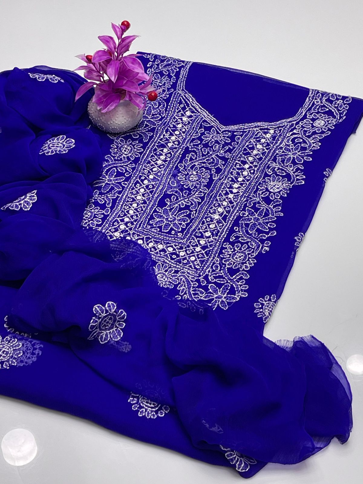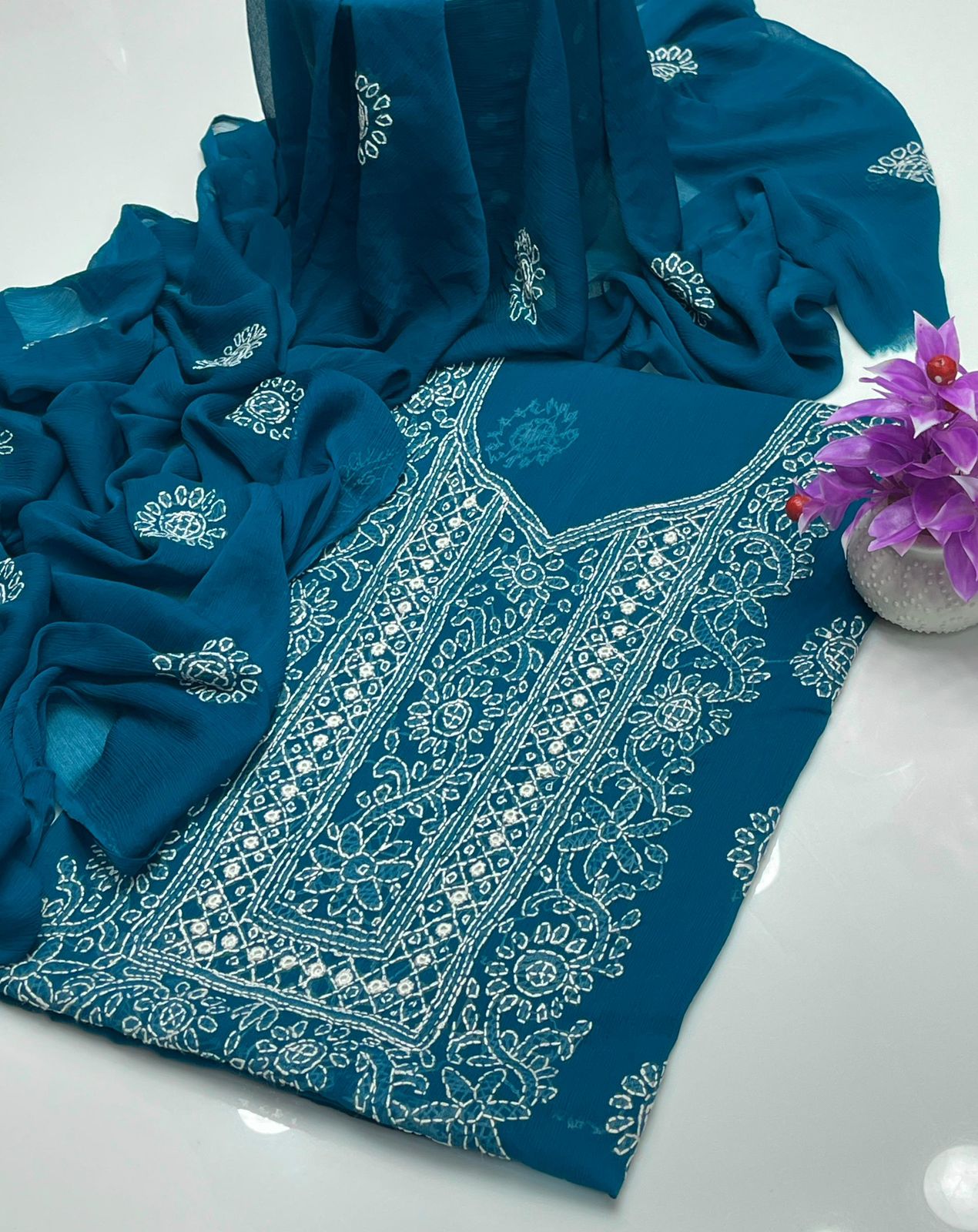 • Dupatta : chaifoon Handmade Chikankari Embroidered