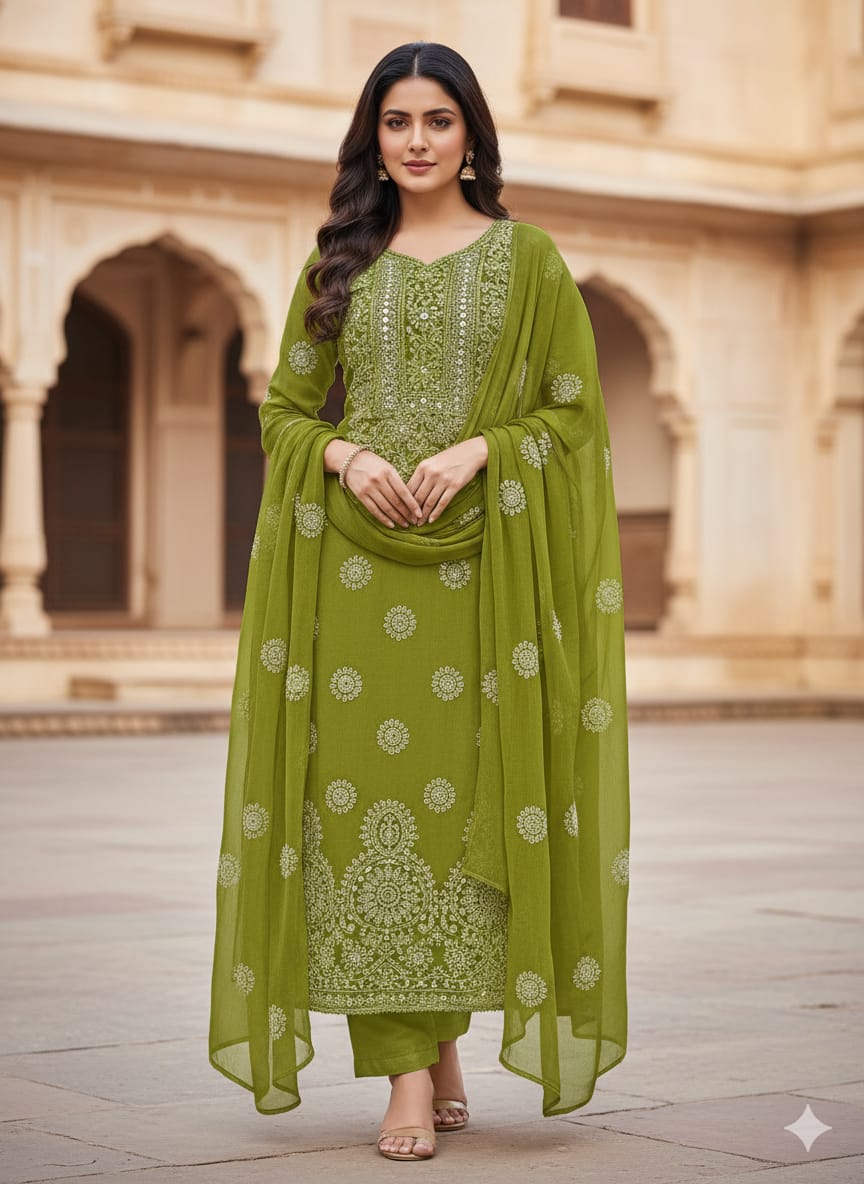 • Shirt : Chiffon Handmade Chikankari Embroidered with mirror work