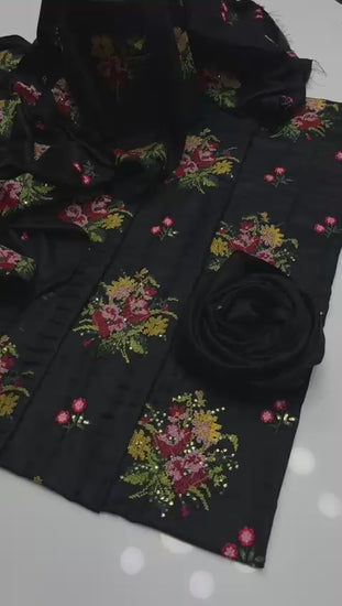 Trouser : Dhanak Sequence Embroidered cross stitch