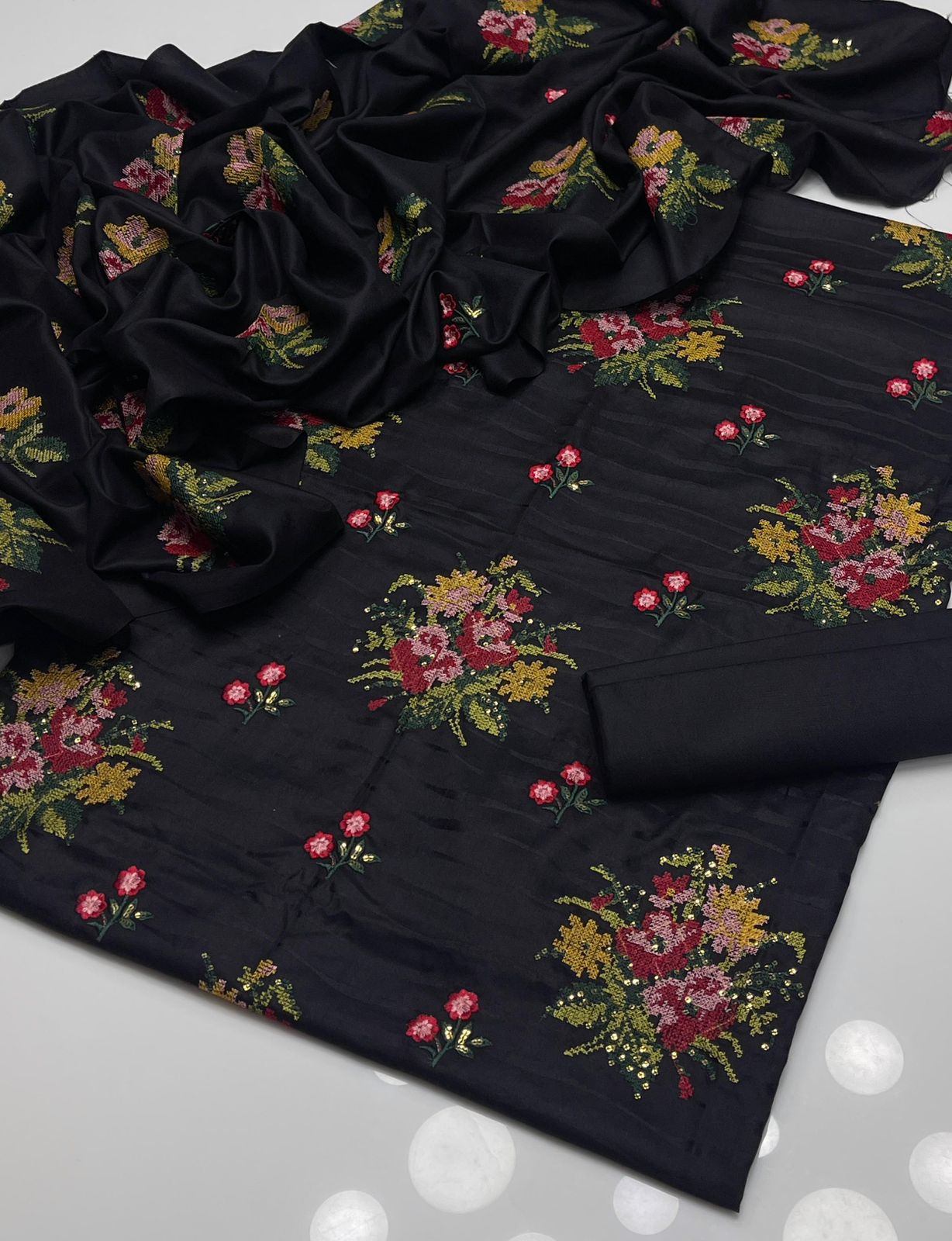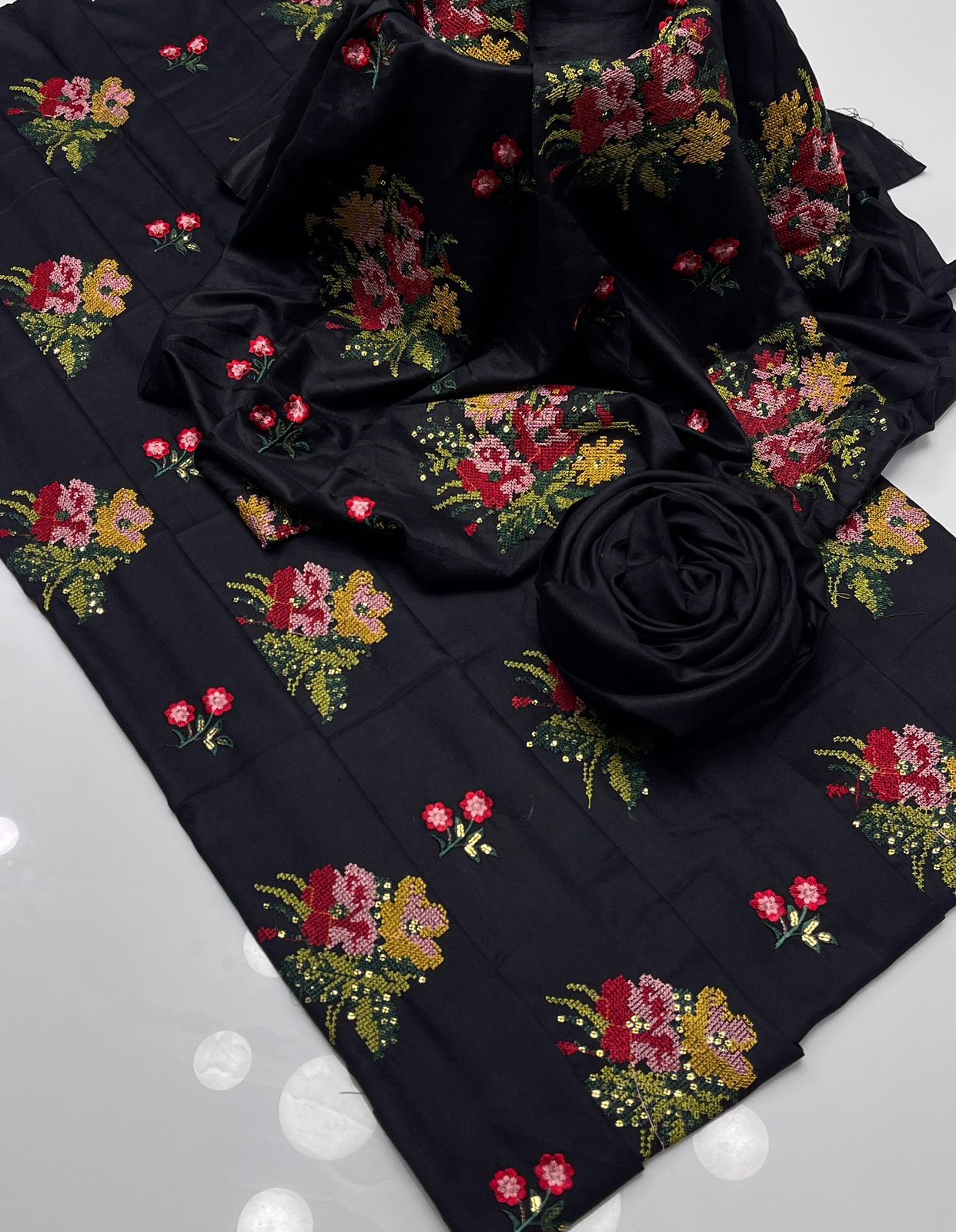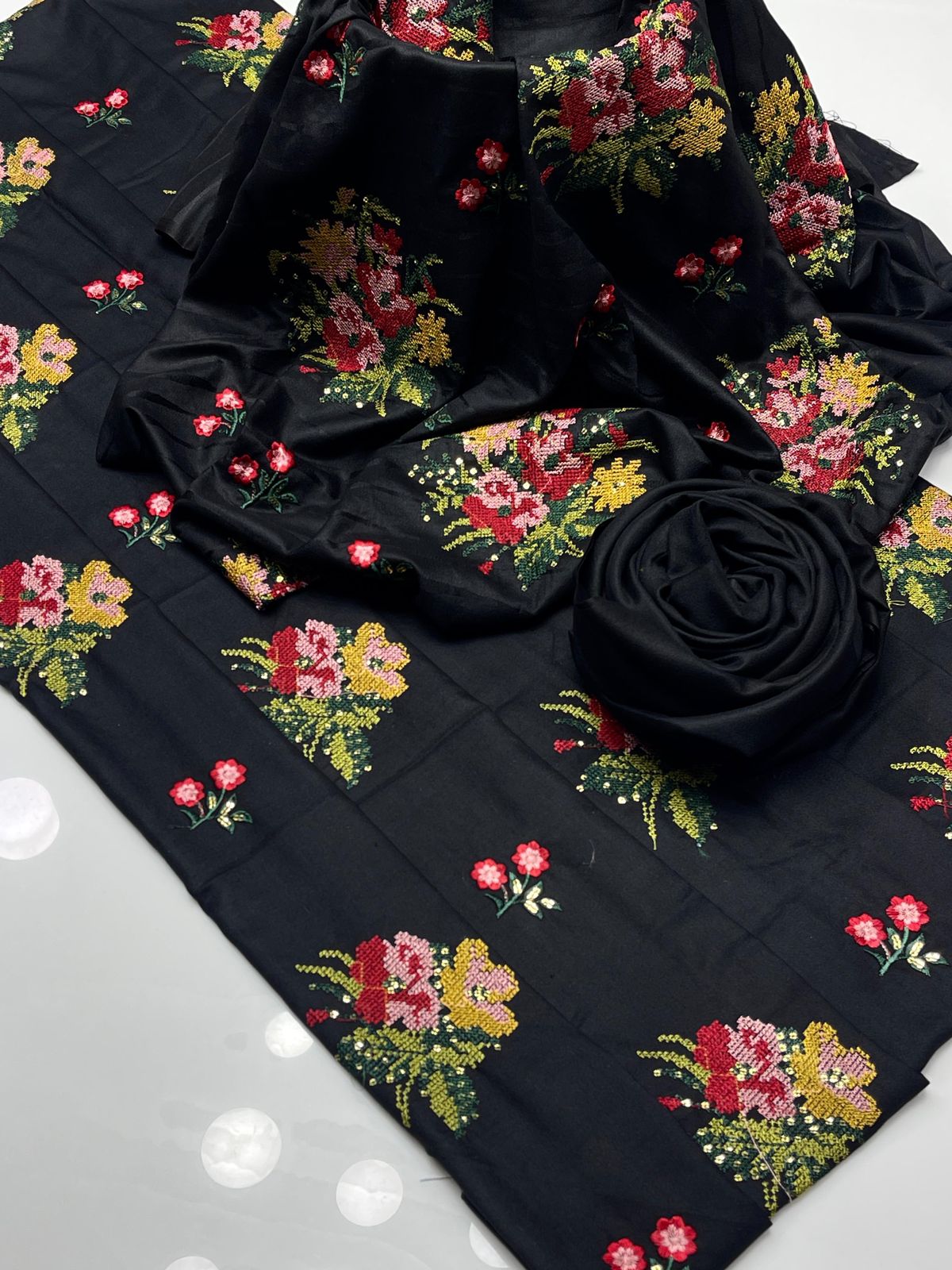 Shirt : Self Dhanak marina sequence cross stitch Embroidery