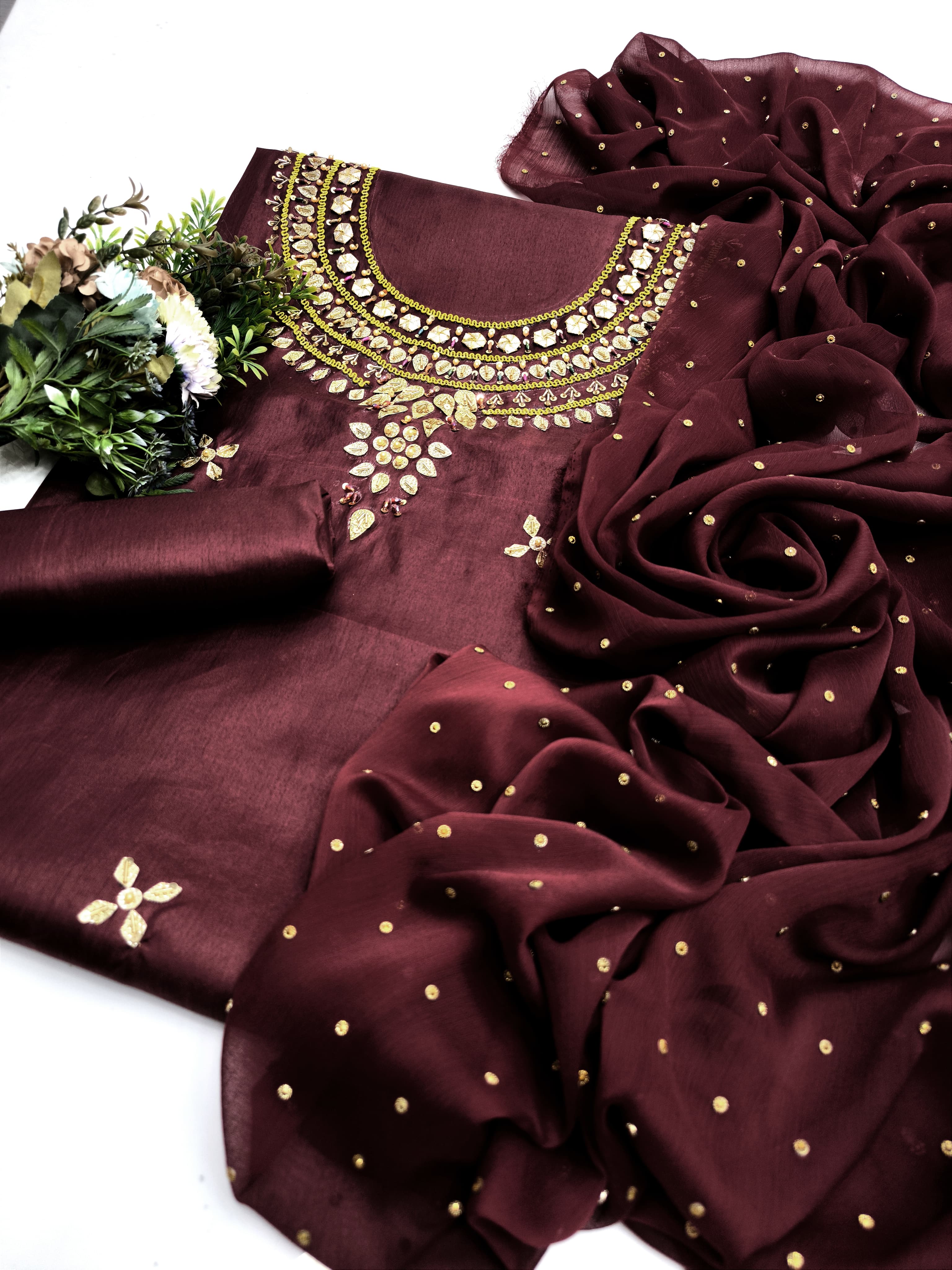 ❤️ Katan silk Gota and fancy beads work on gala Shirt