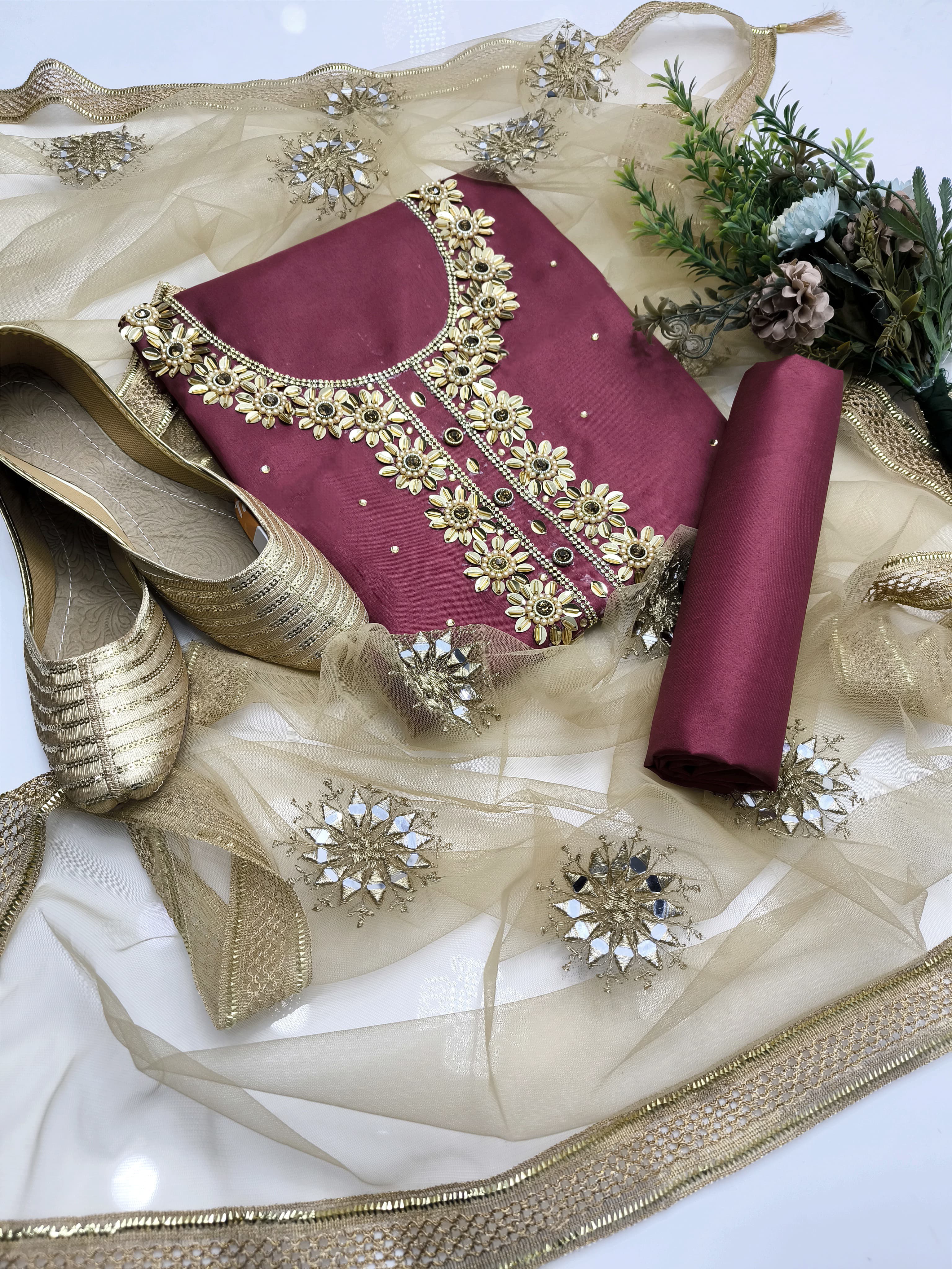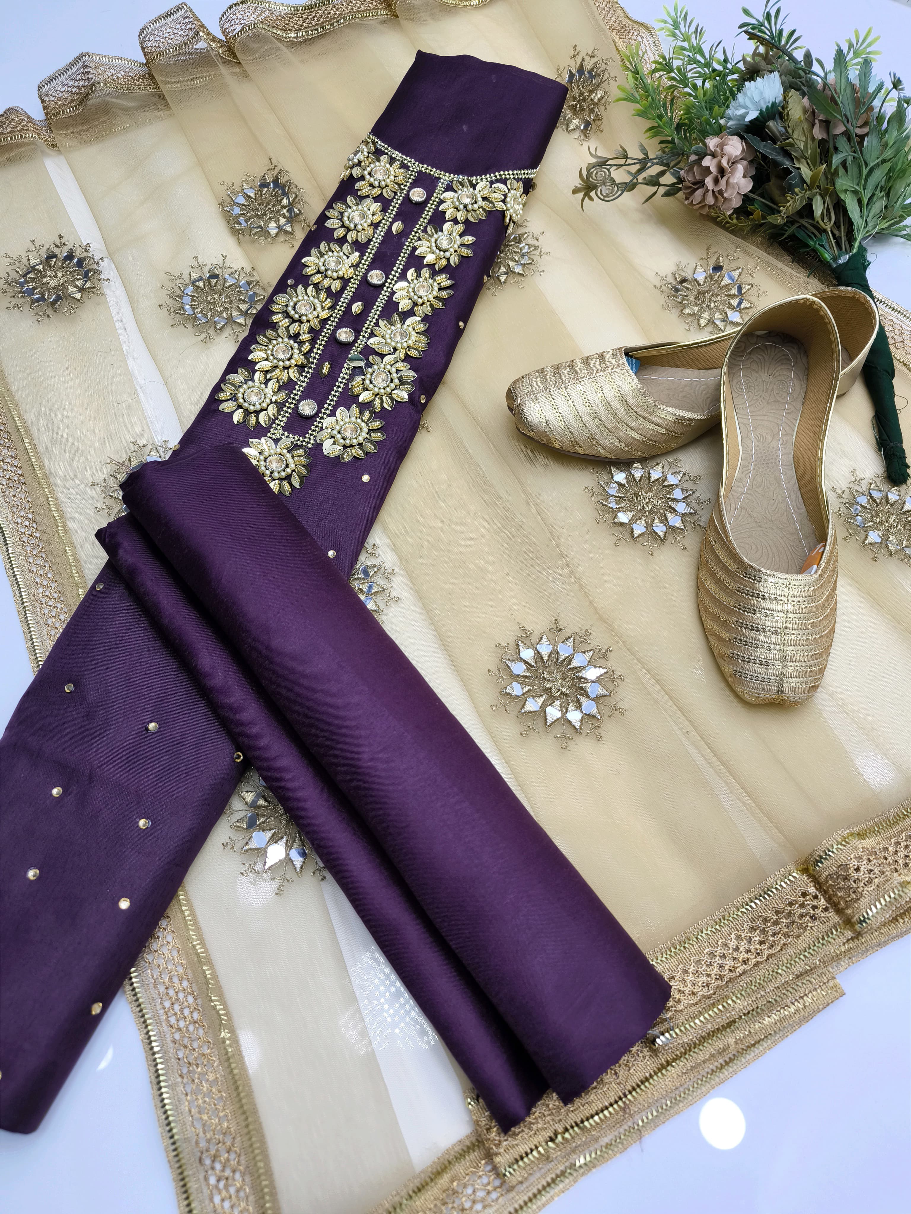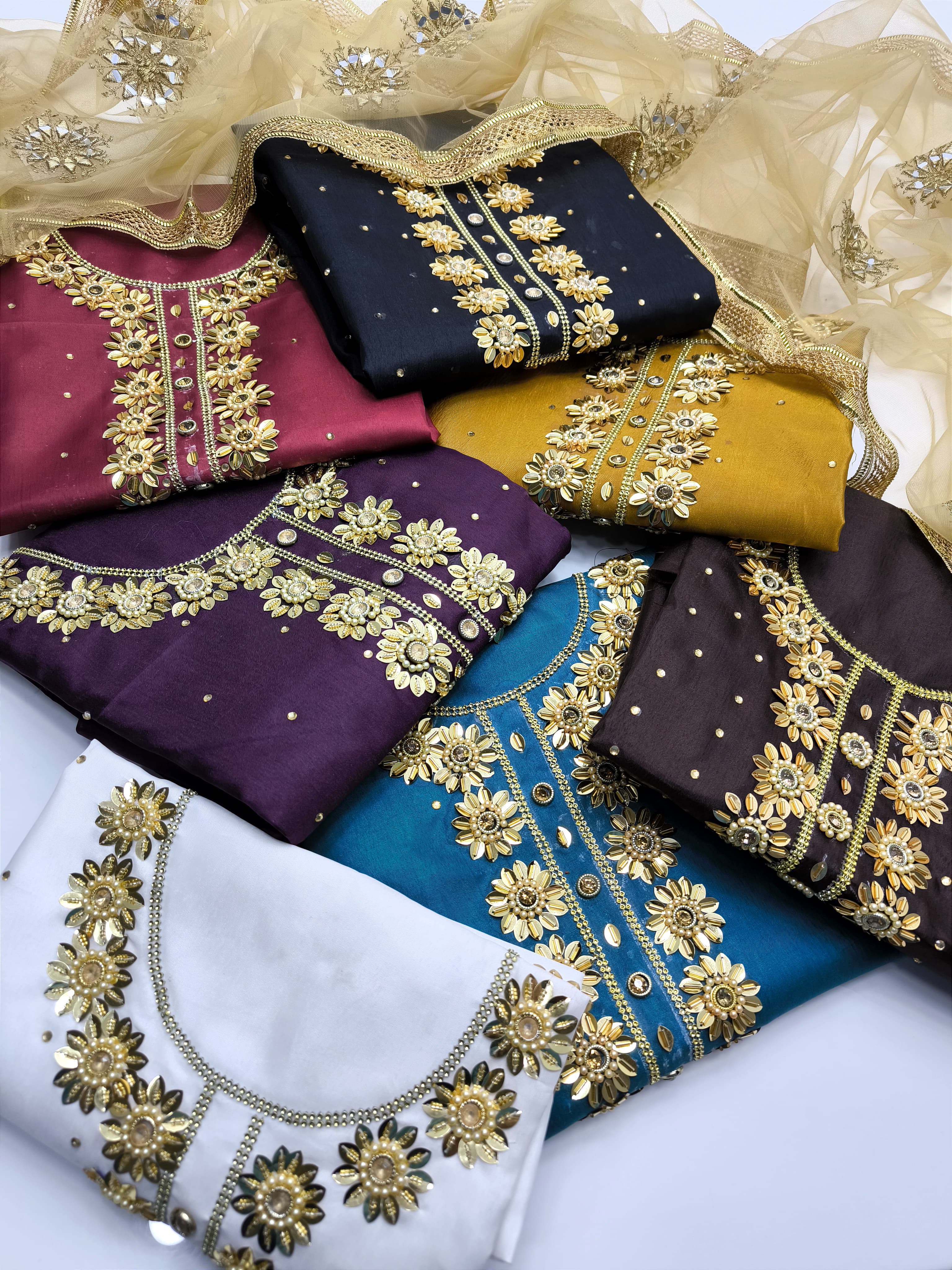 ❤️ Kattan Silk Beautiful Handmade Mooti crystal Work & Kundan work shirt