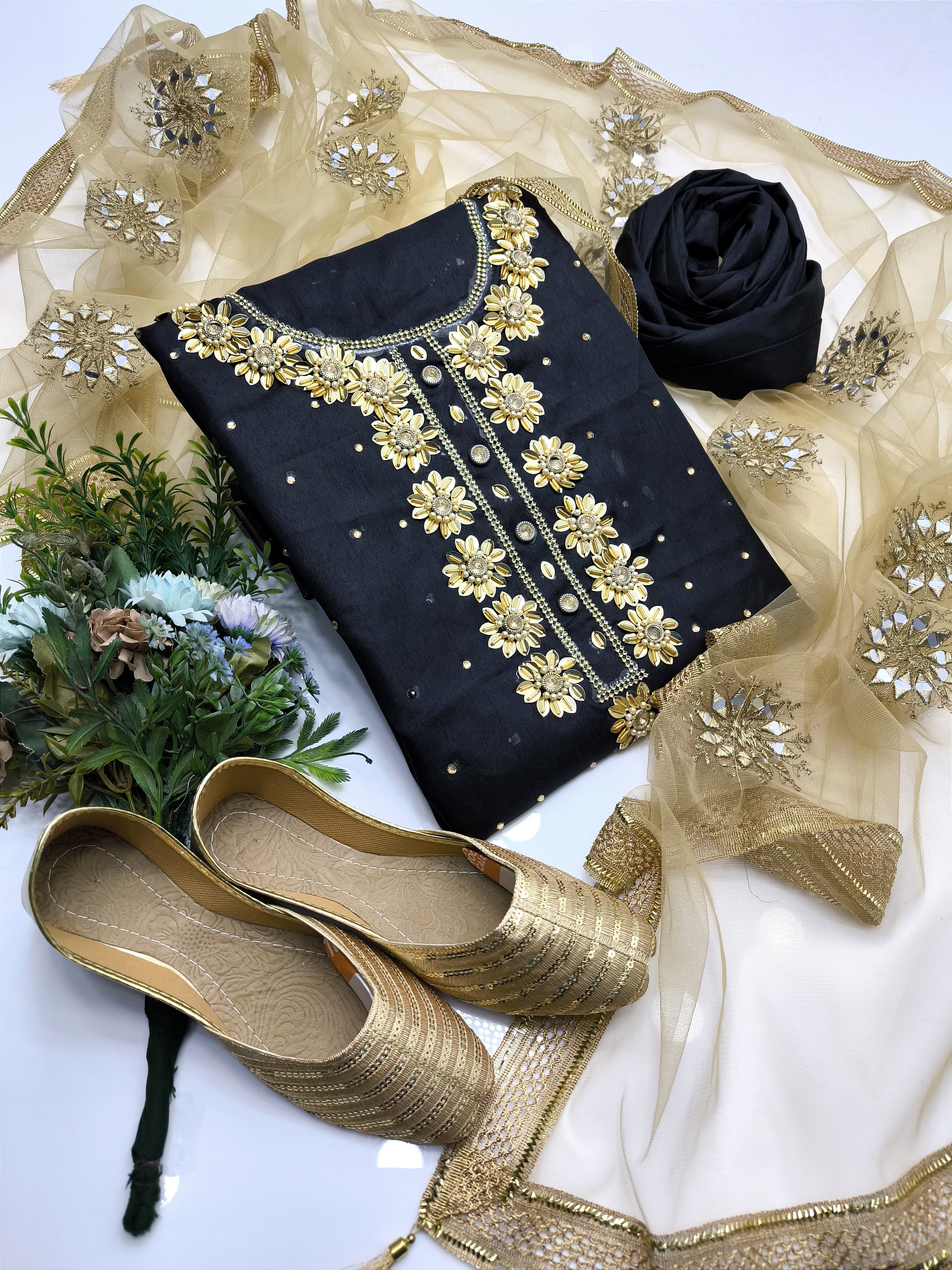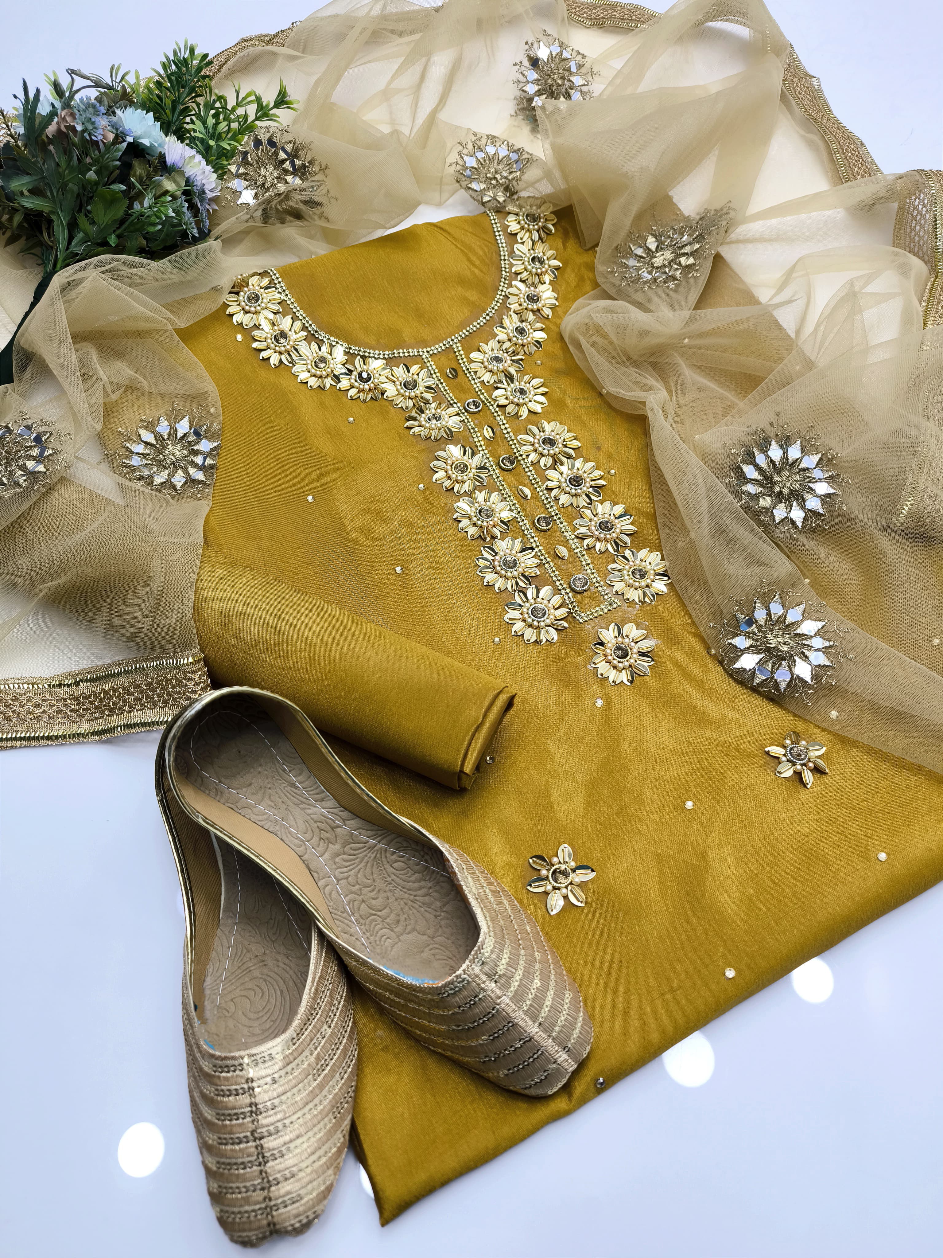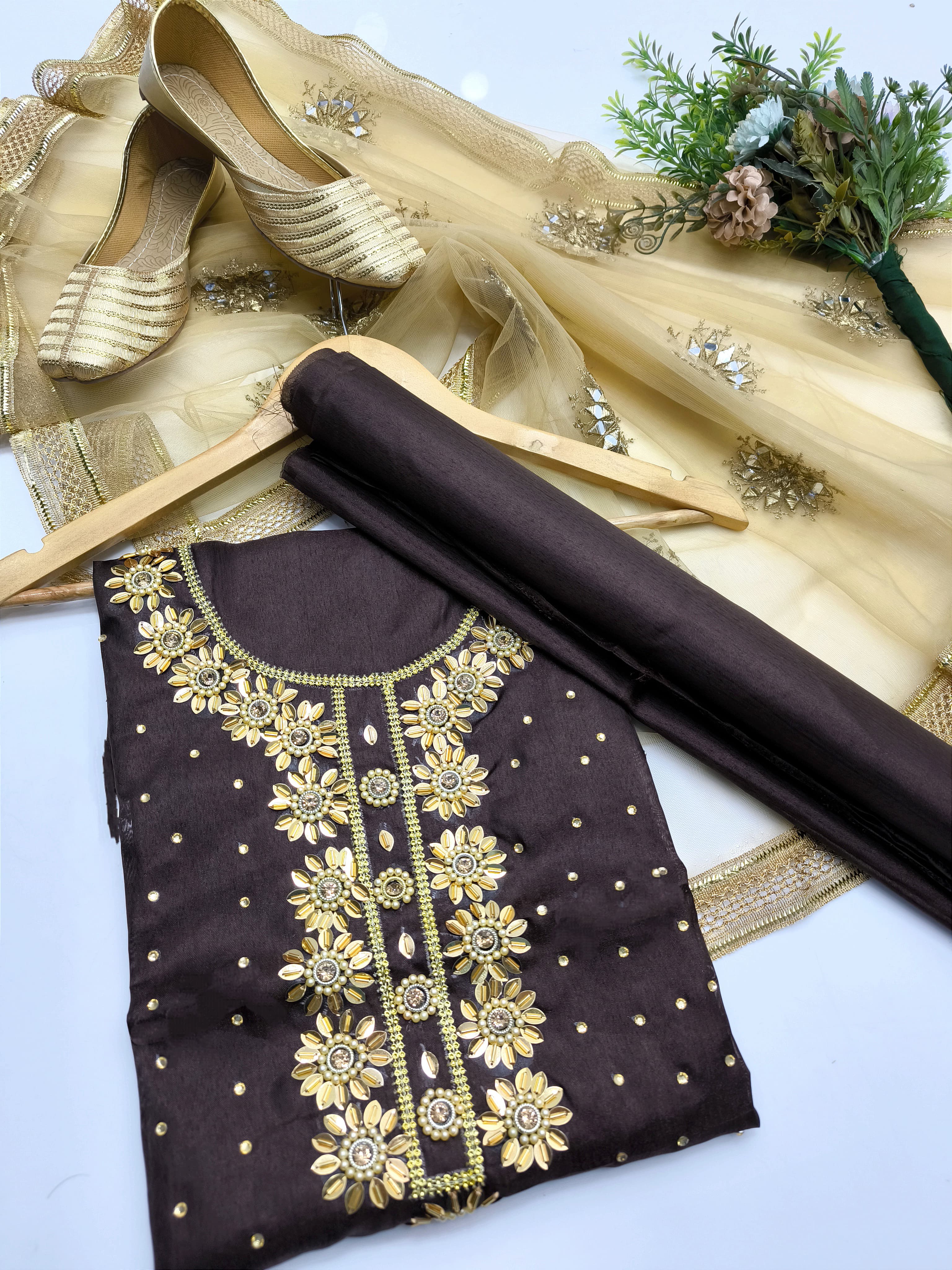 ❤️ Kattan Silk Beautiful Handmade Mooti crystal Work & Kundan work shirt