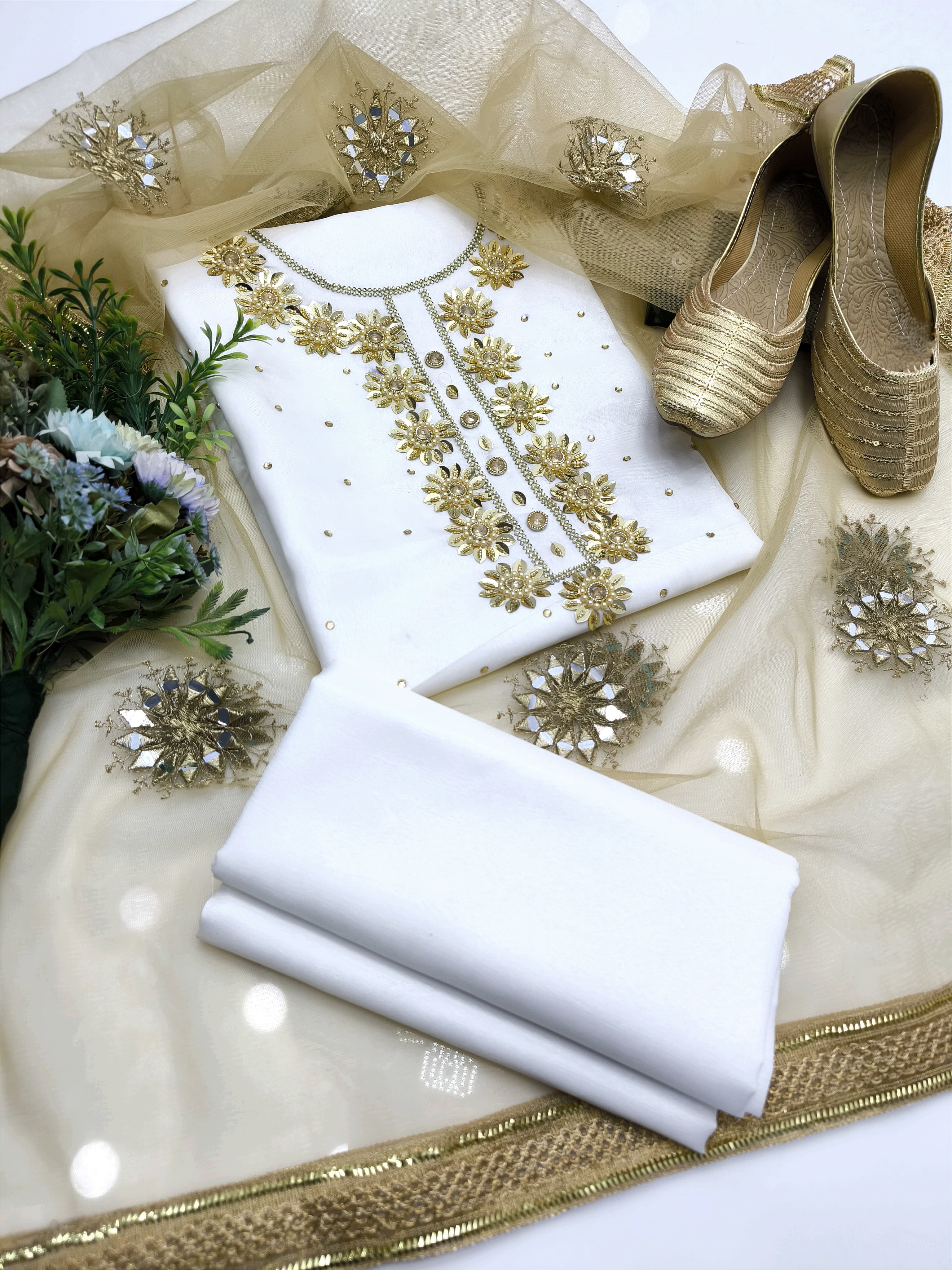 ❤️ Net Mirror Buncheswork DUPPATA with 4 sided Gotta Lase