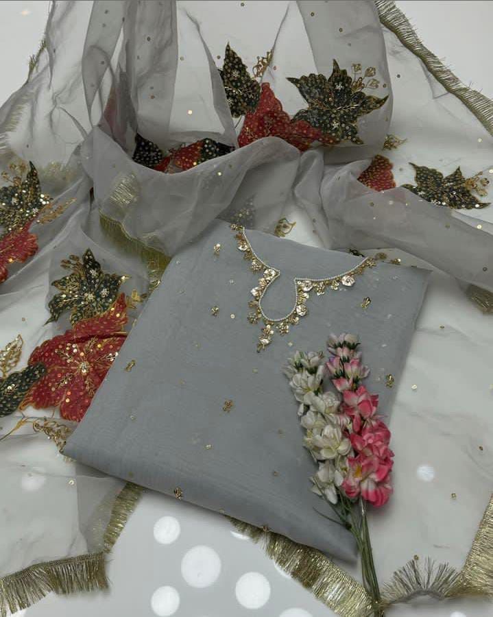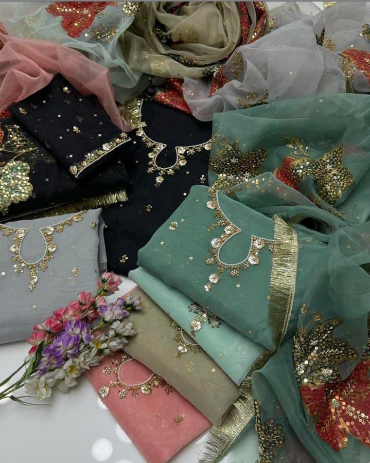 ✅ One of the beautiful & Stunning handwork Stones And beads work organza shirt