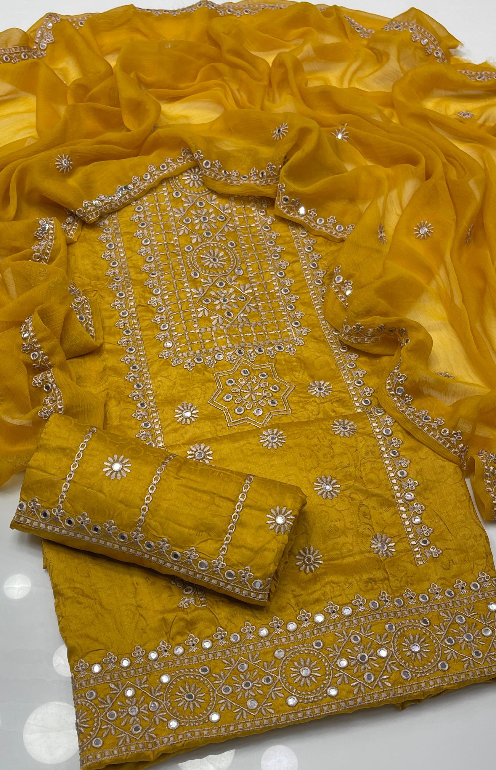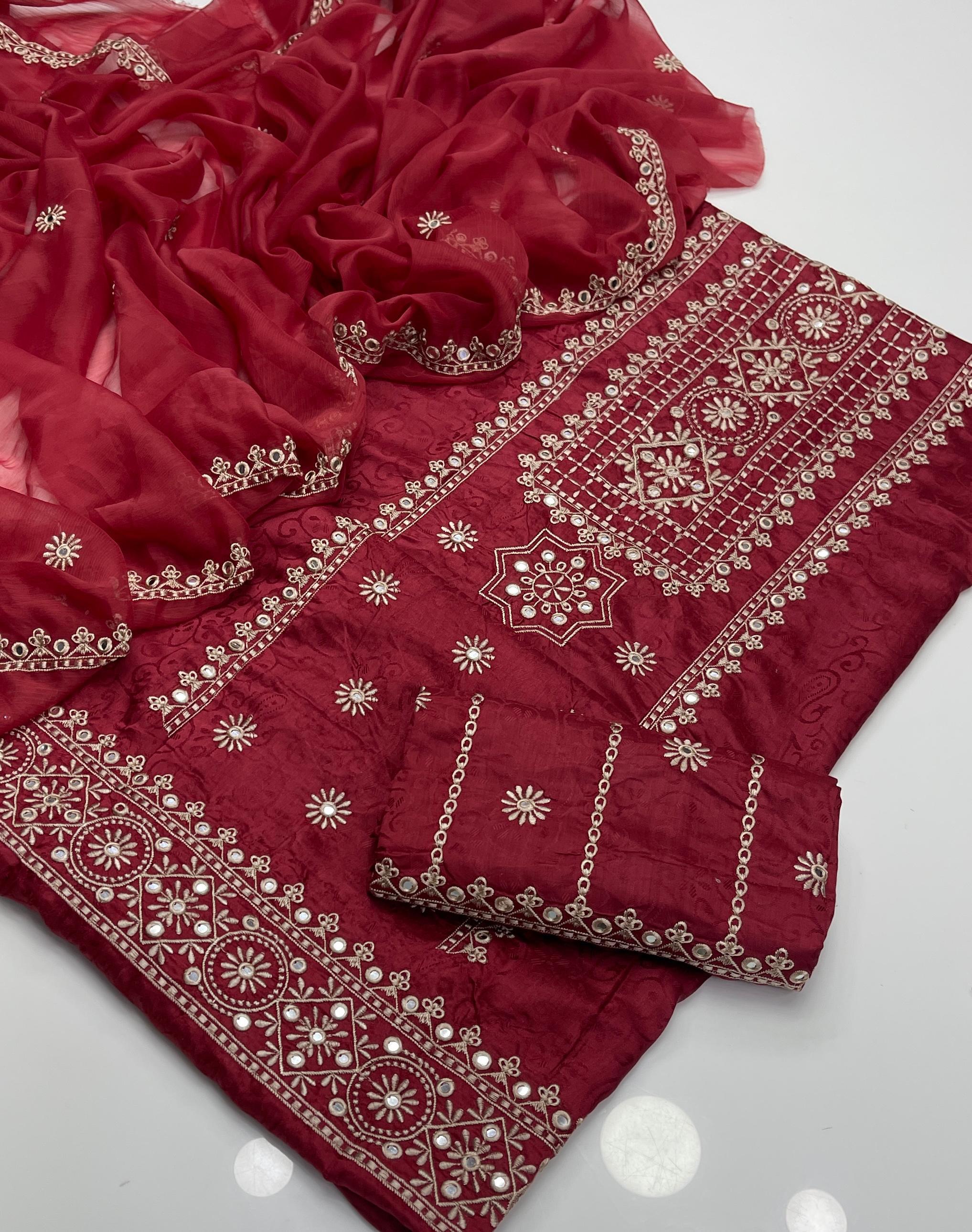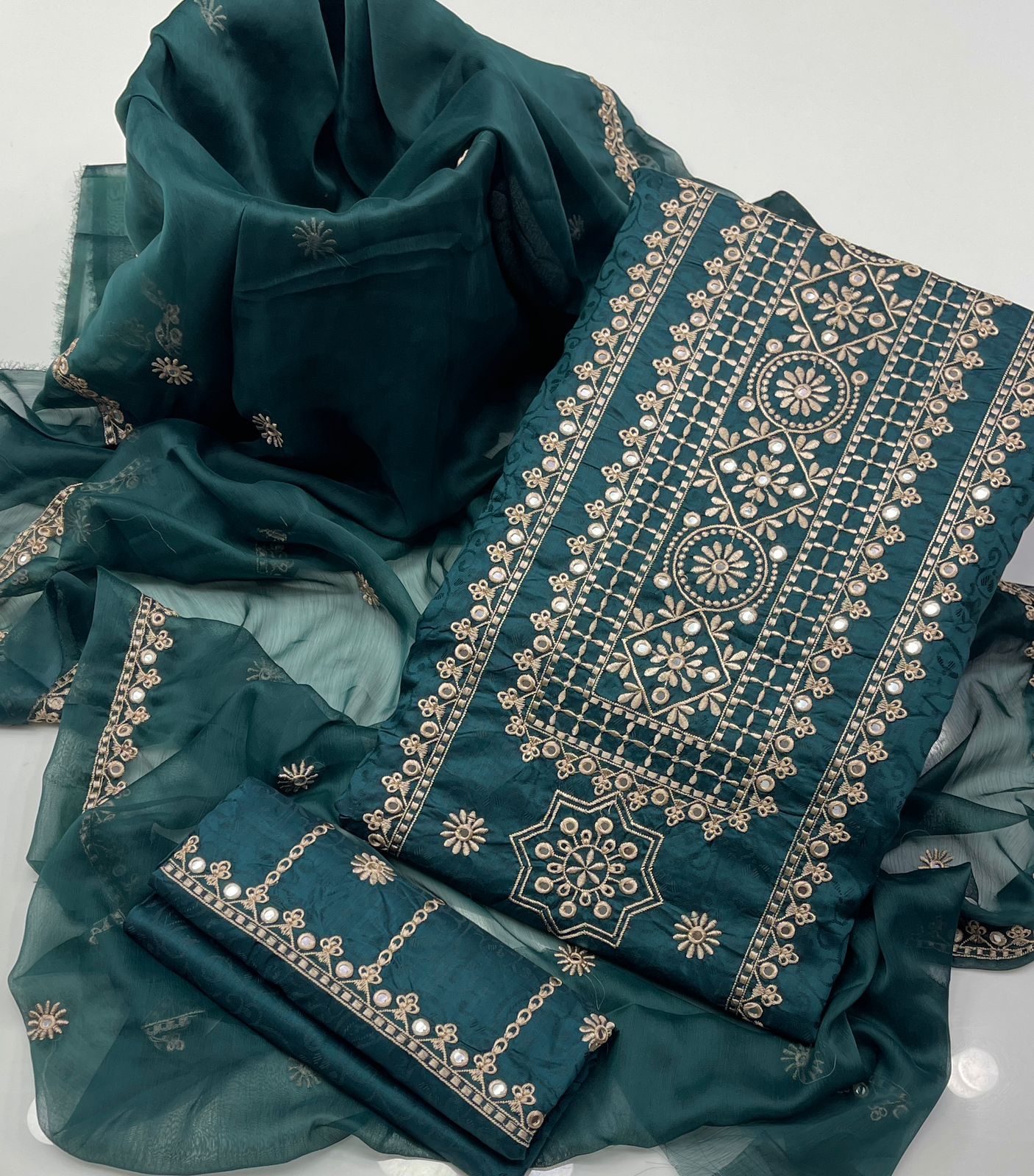 Shirt : Viscous Embroidered Galla Daman Cross 9mm with Self jacquard