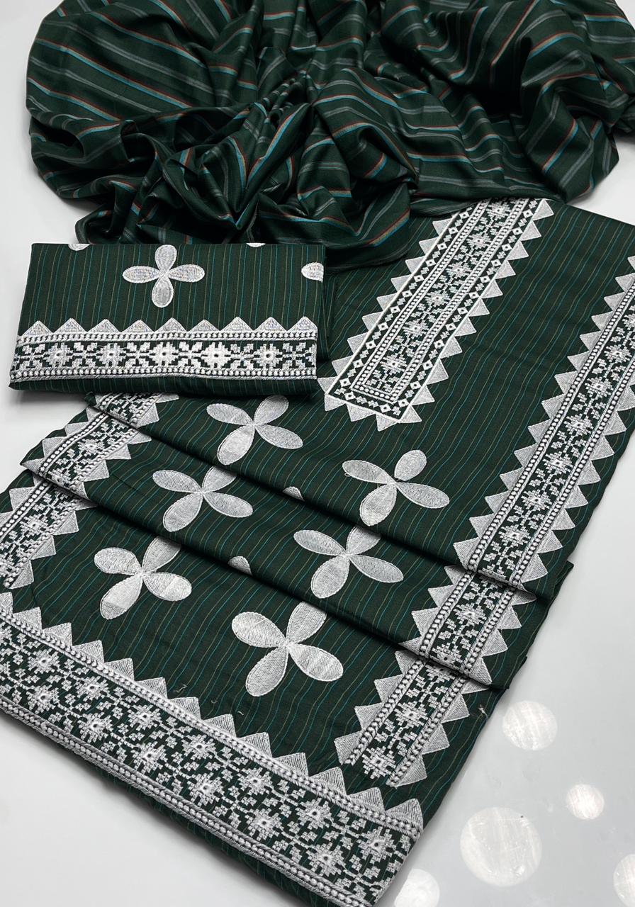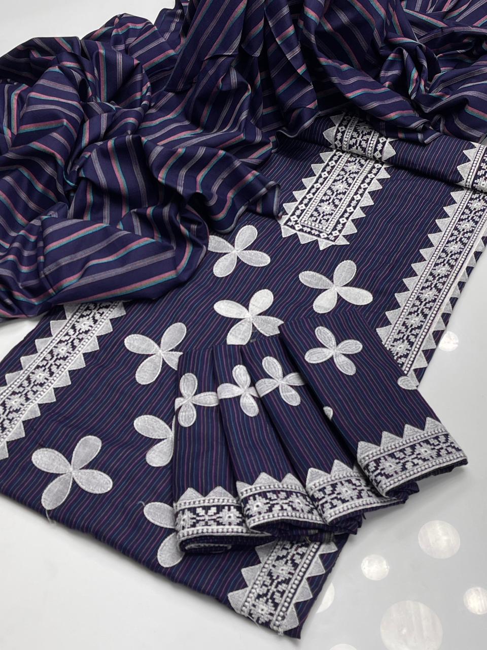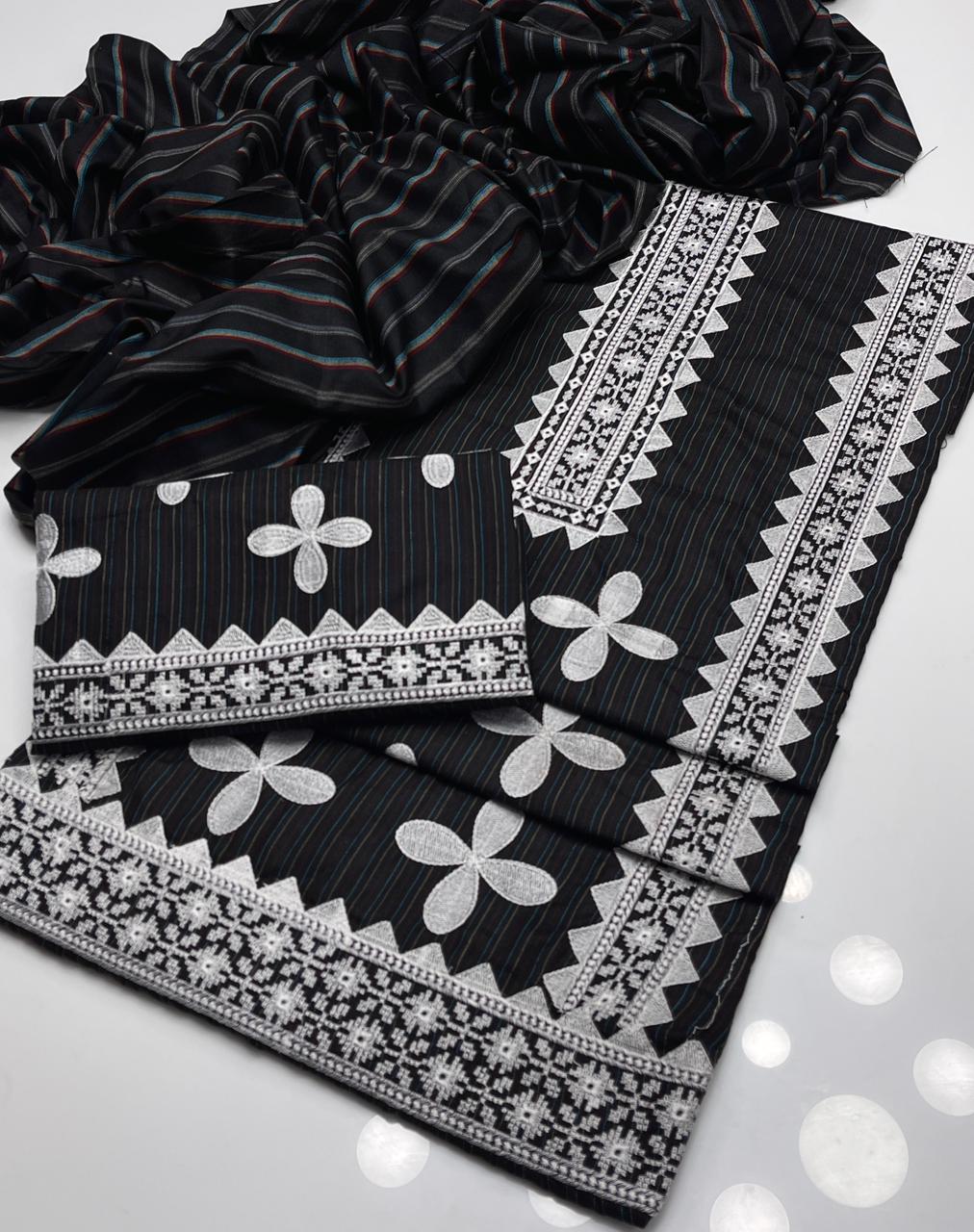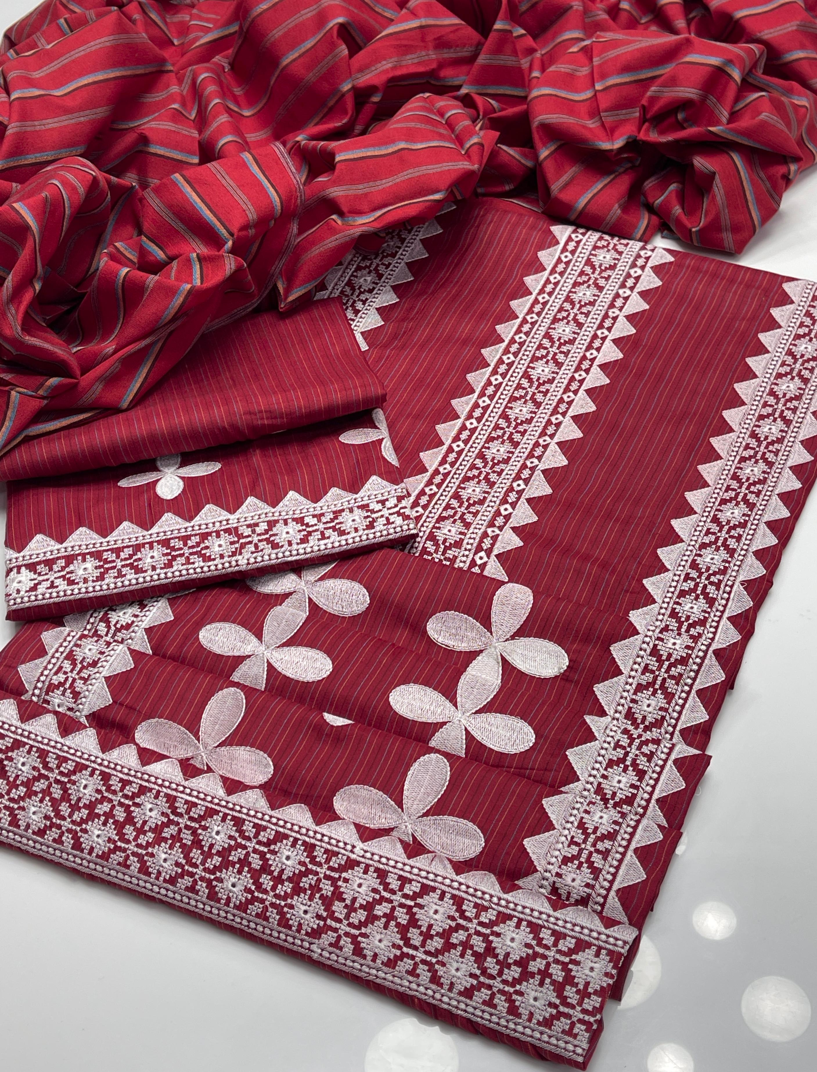 • Khaadi Khaadar Fabric Applice Embroidered Front & Embroidered trouser Along Khaadi Khaadar Plain Dupatta.