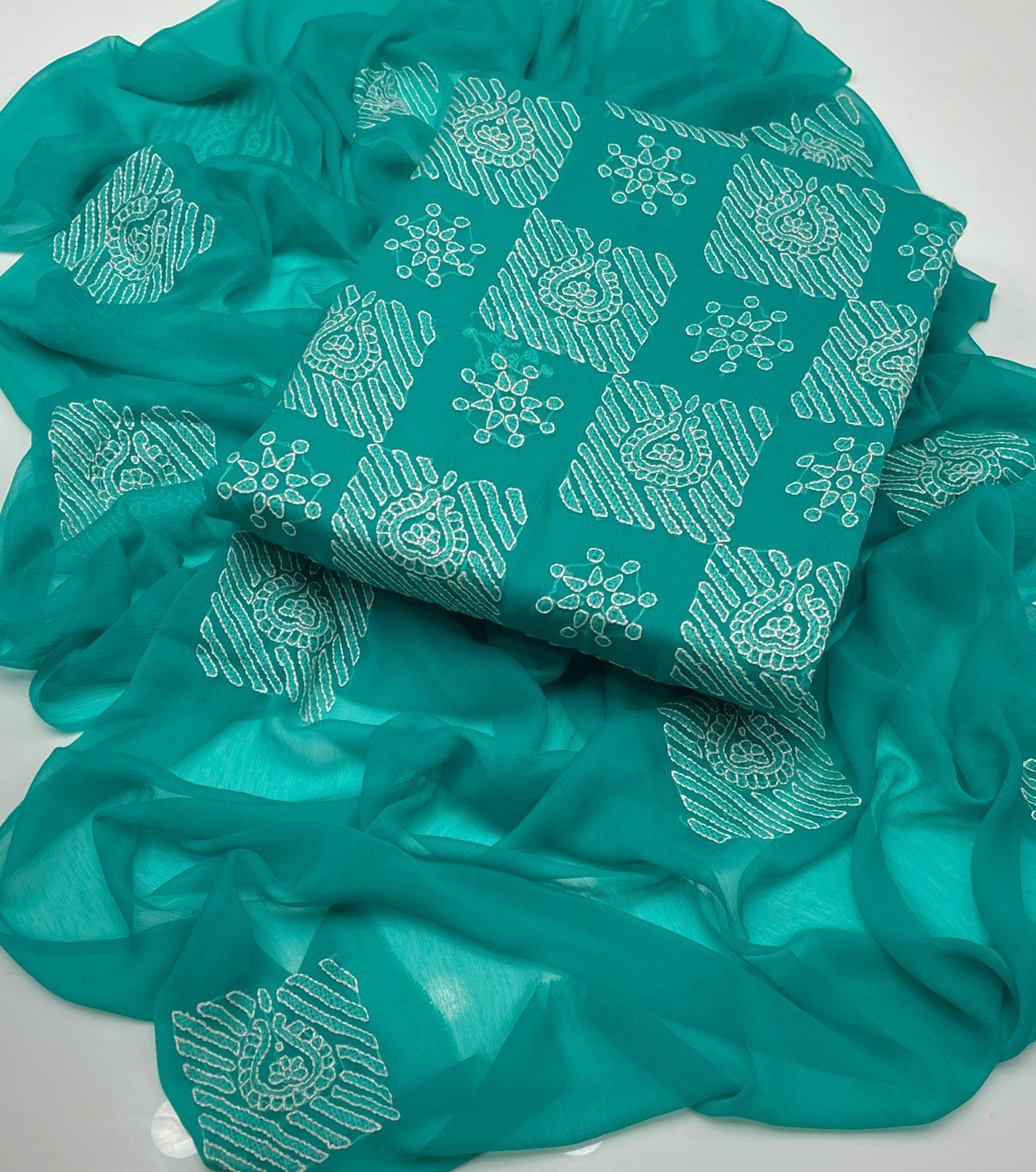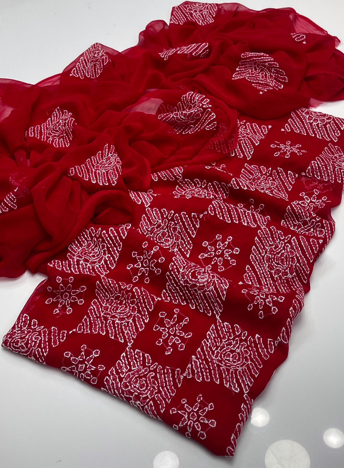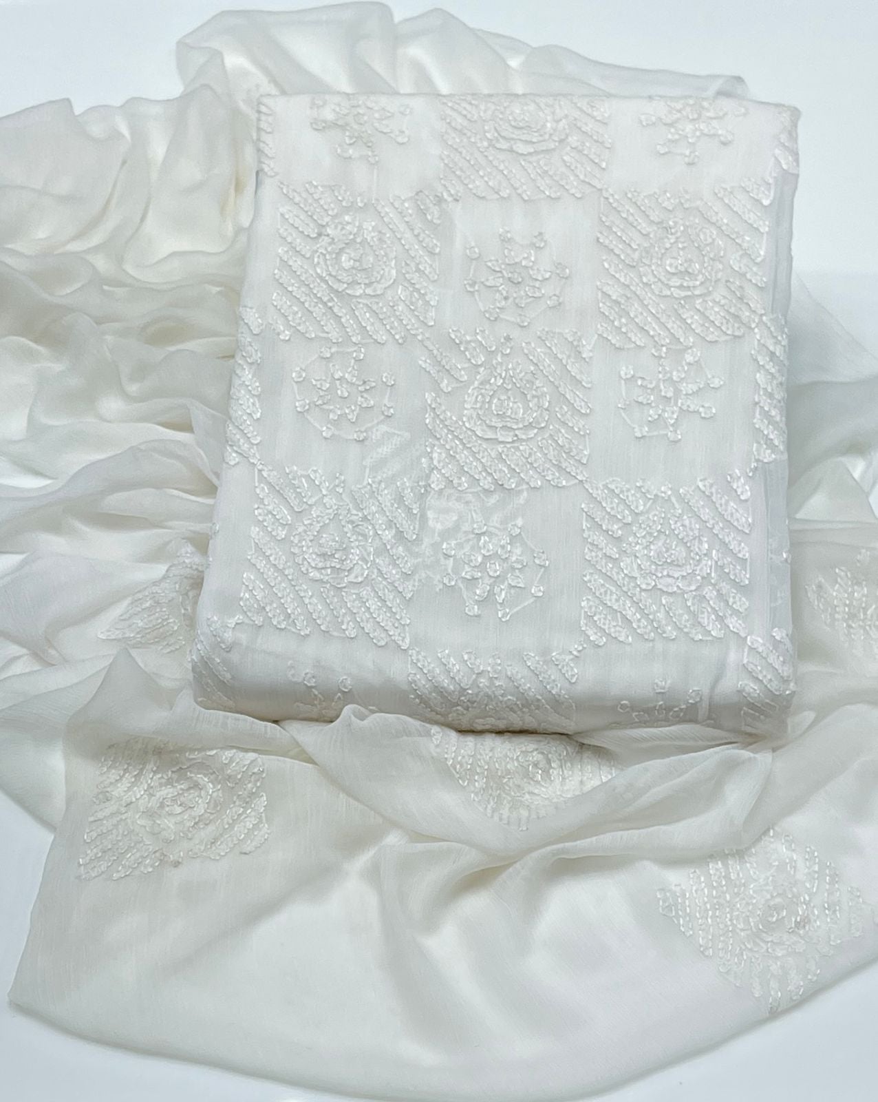Dupatta : Chiffon handmade Chikankari Embroidered