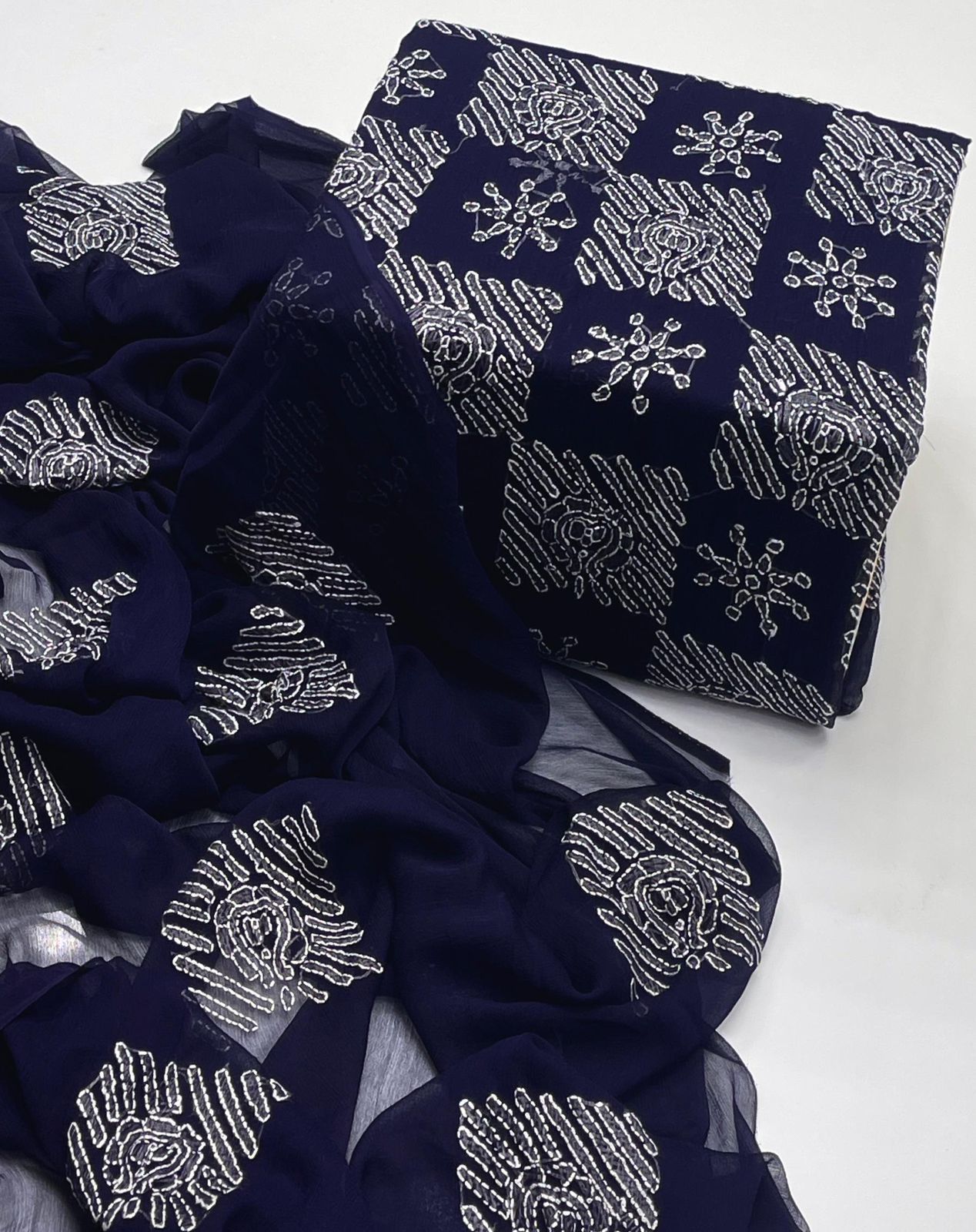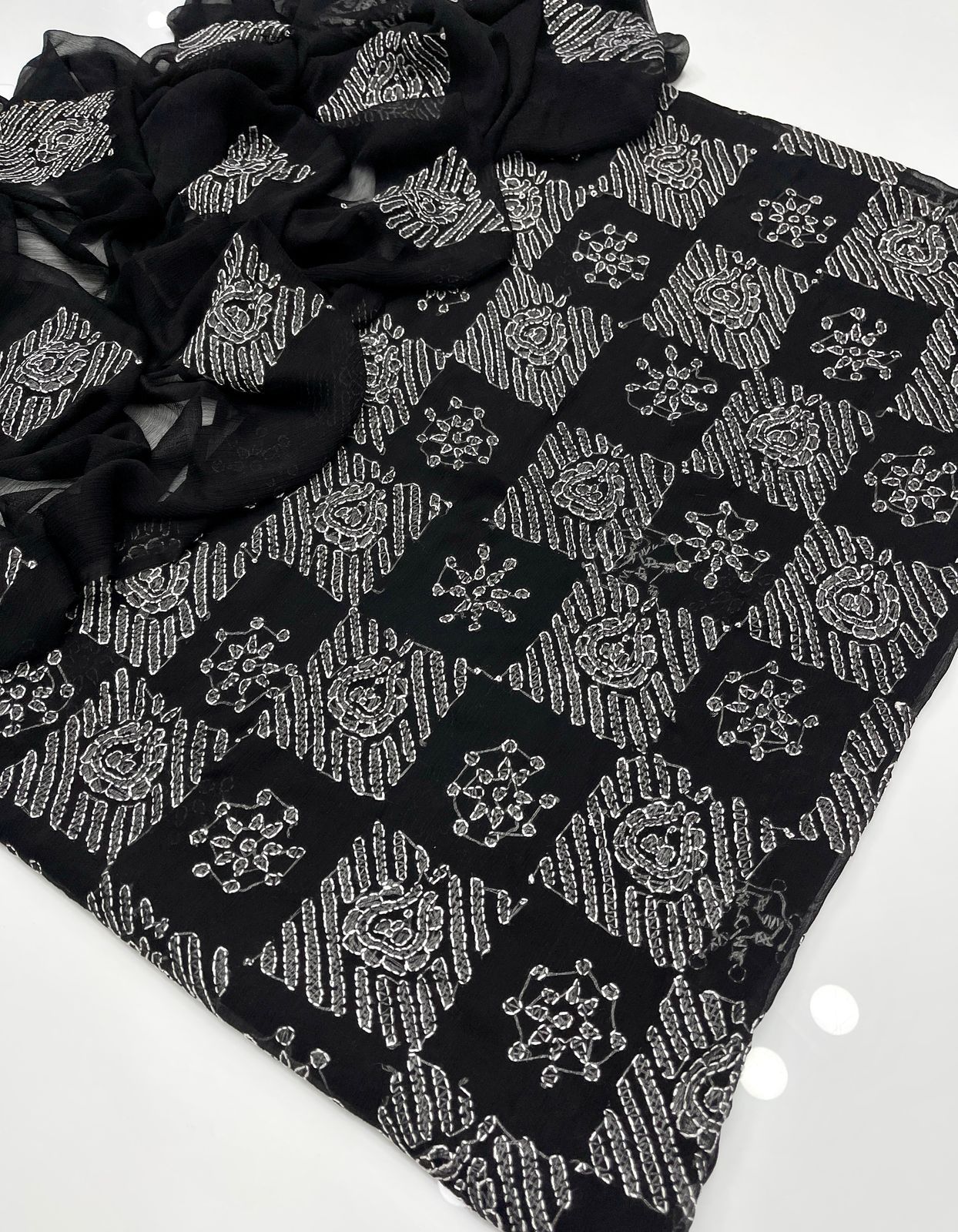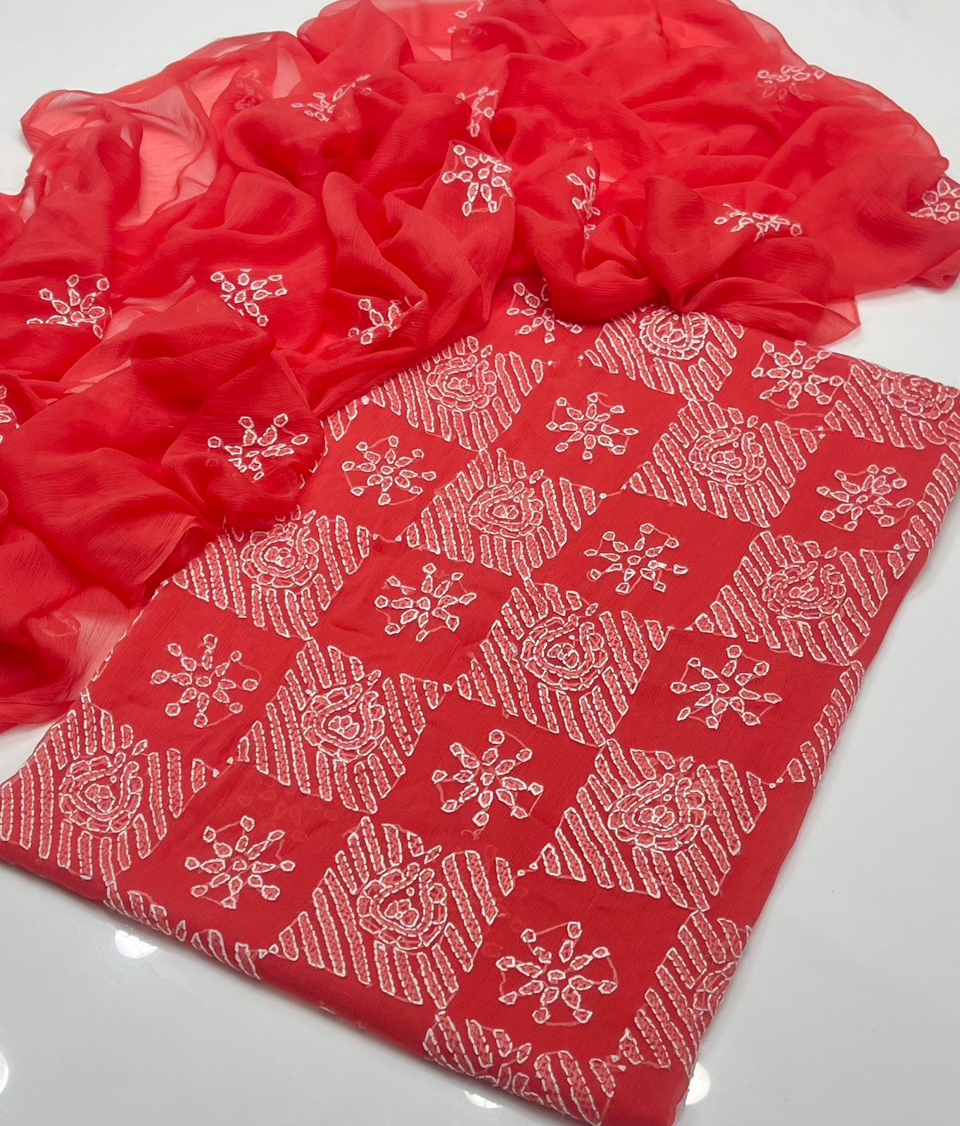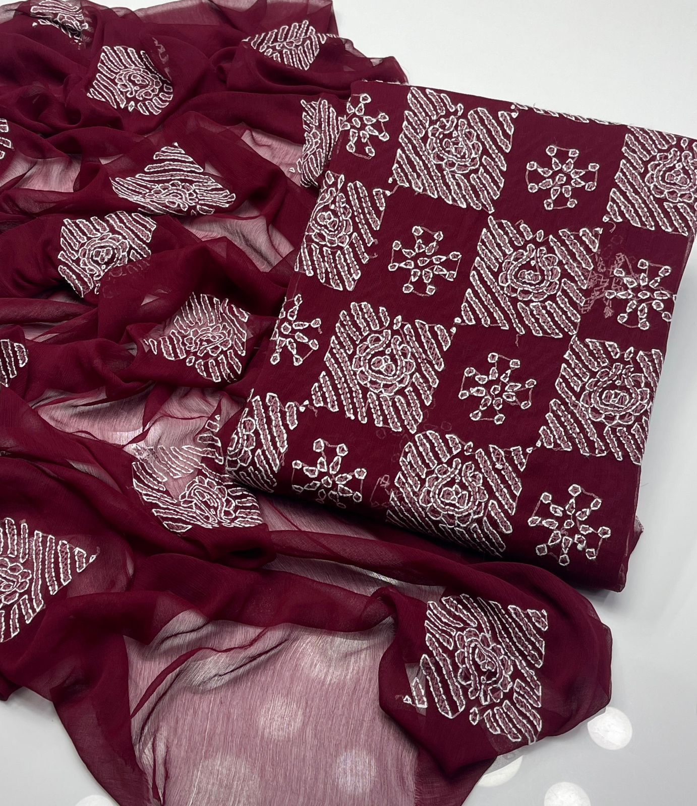 Dupatta : Chiffon handmade Chikankari Embroidered
