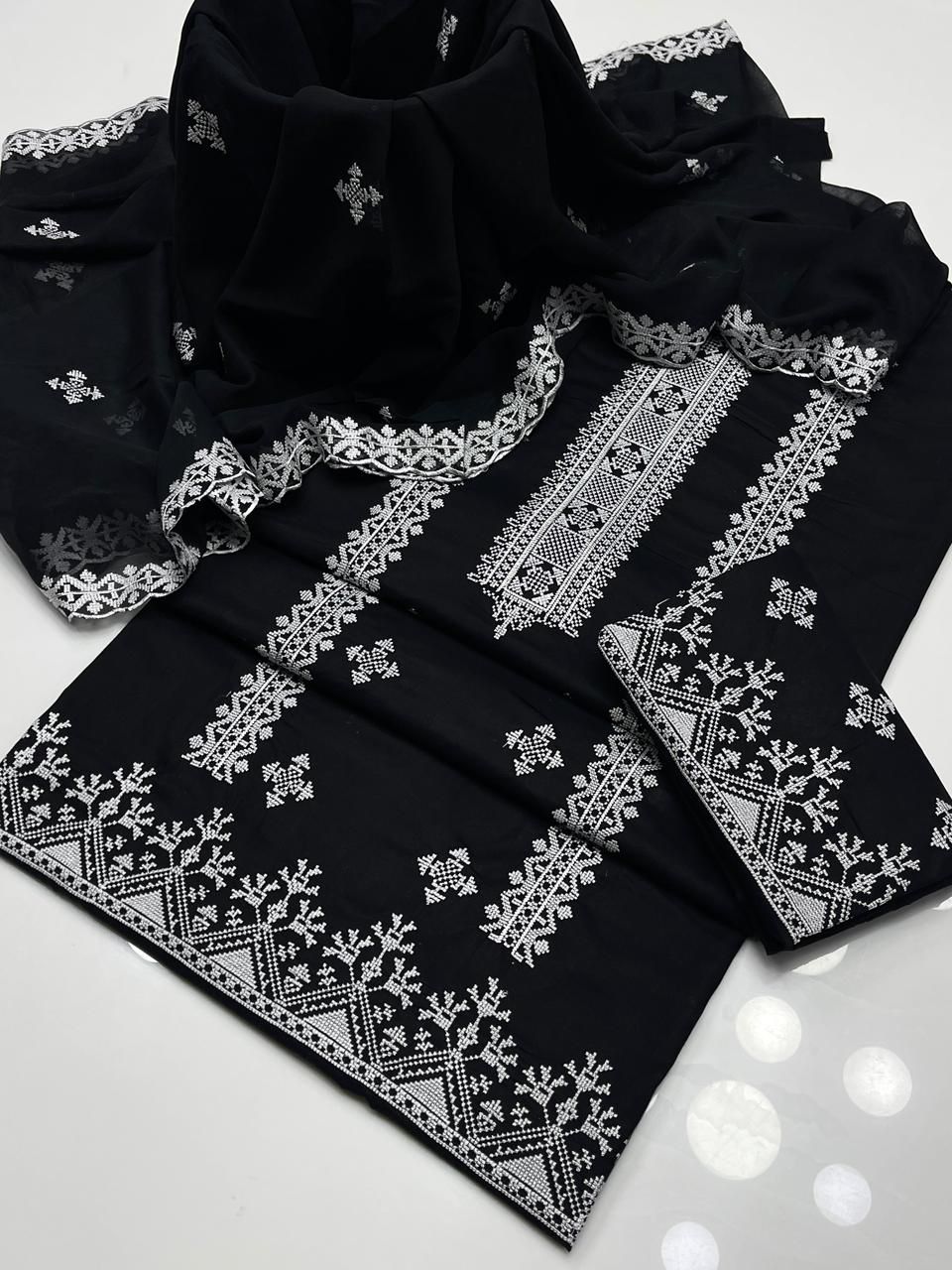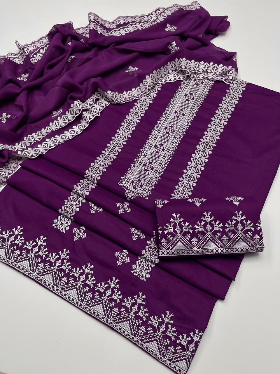 Shirt : Lawn Cotton Embroidered Cross Stitch galla Daman