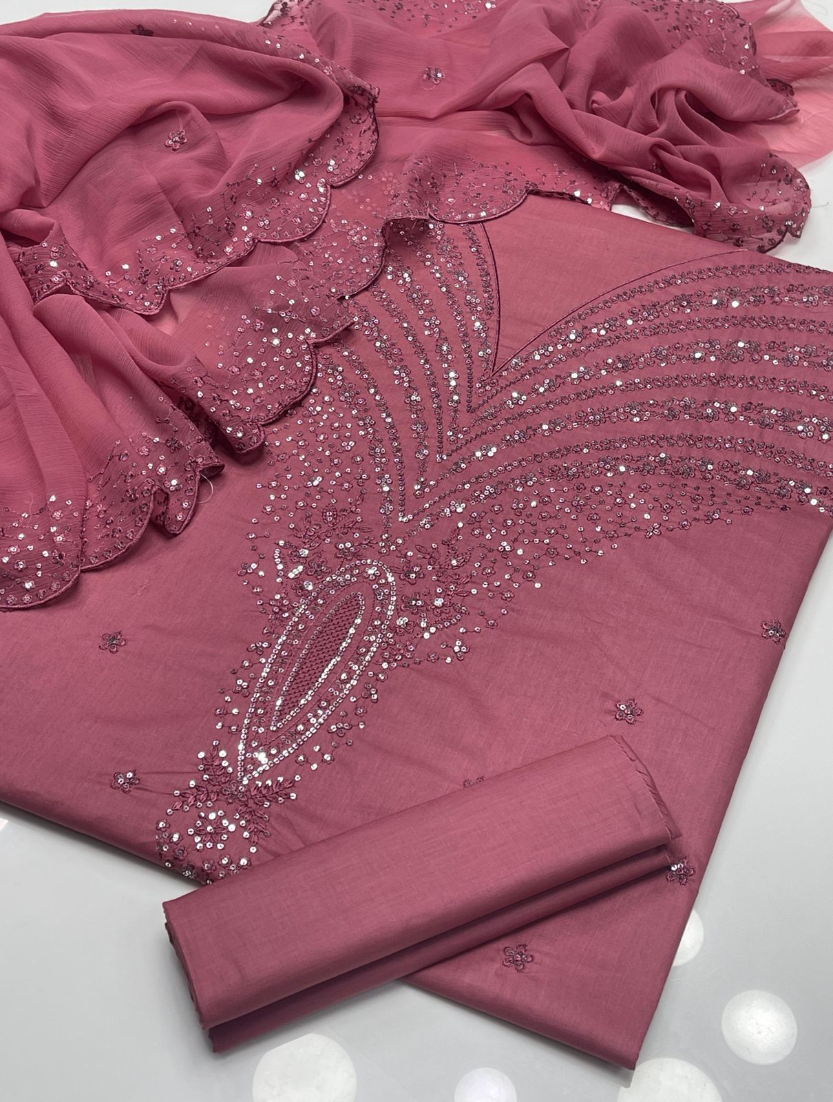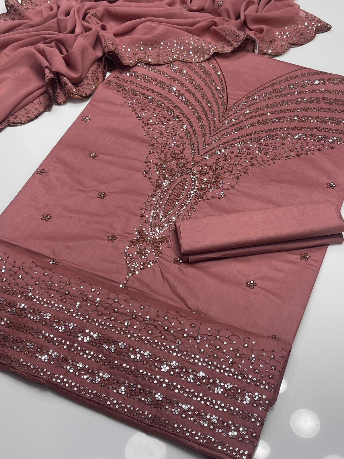 Dupatta : chaifoon Embroidered With Sequence