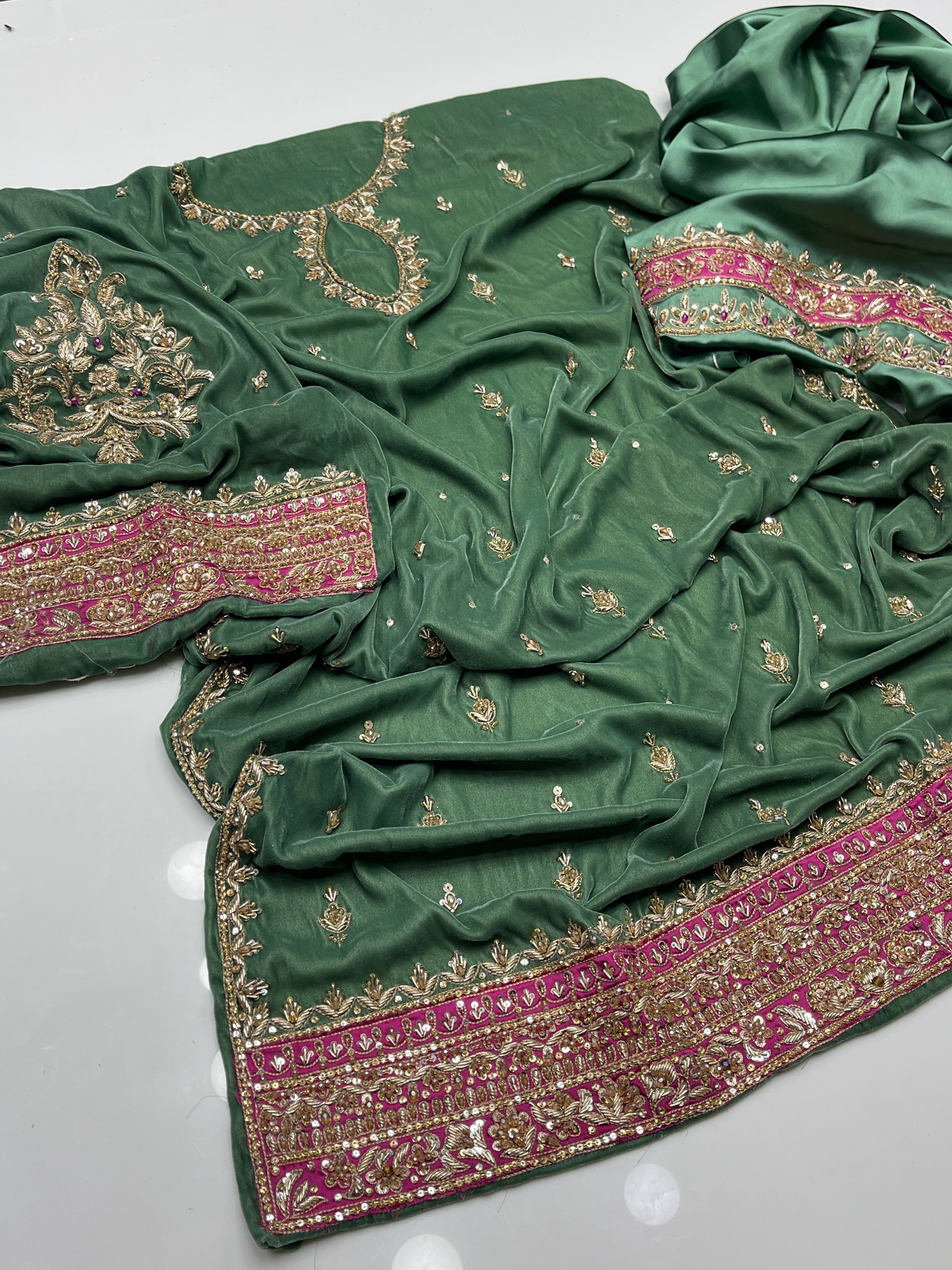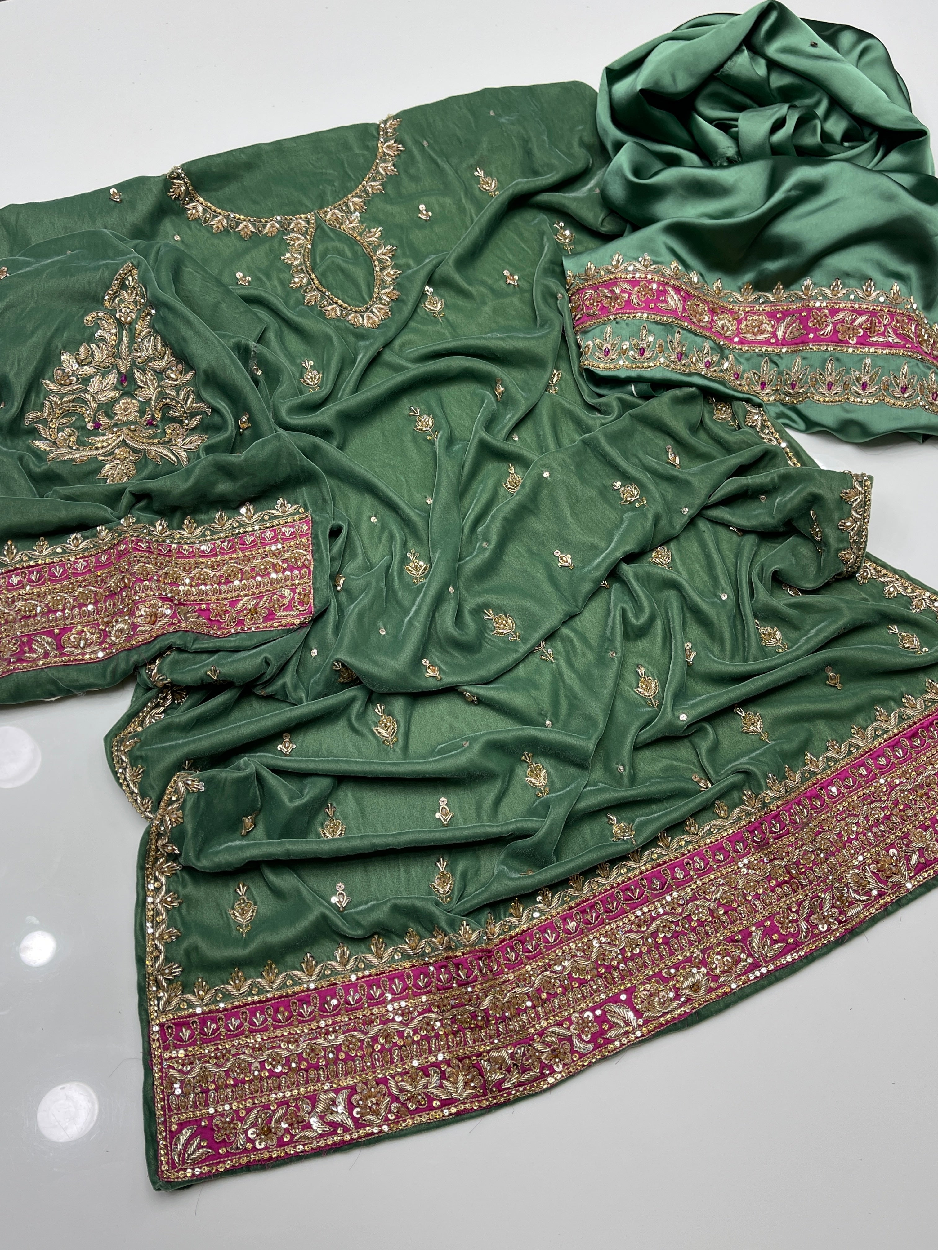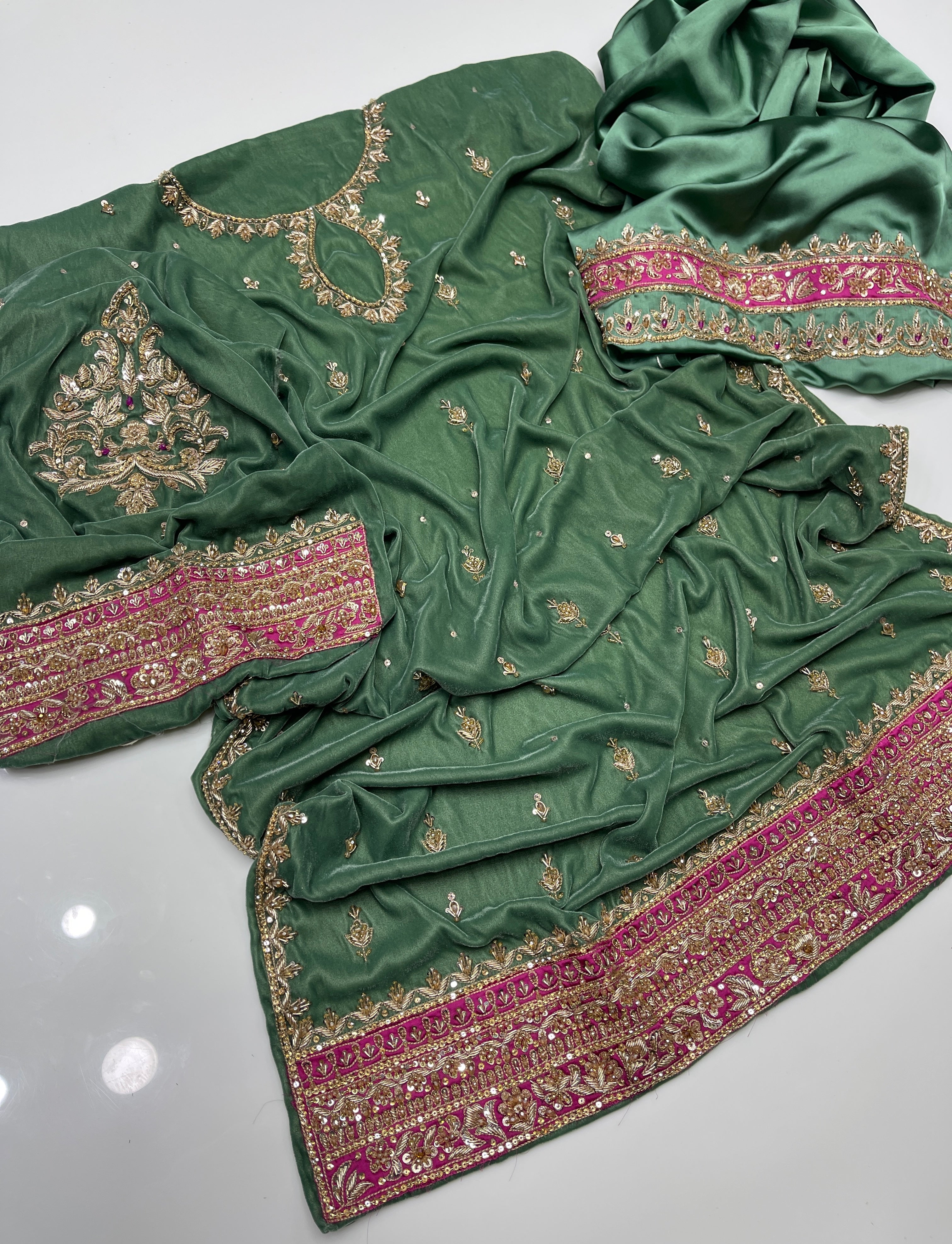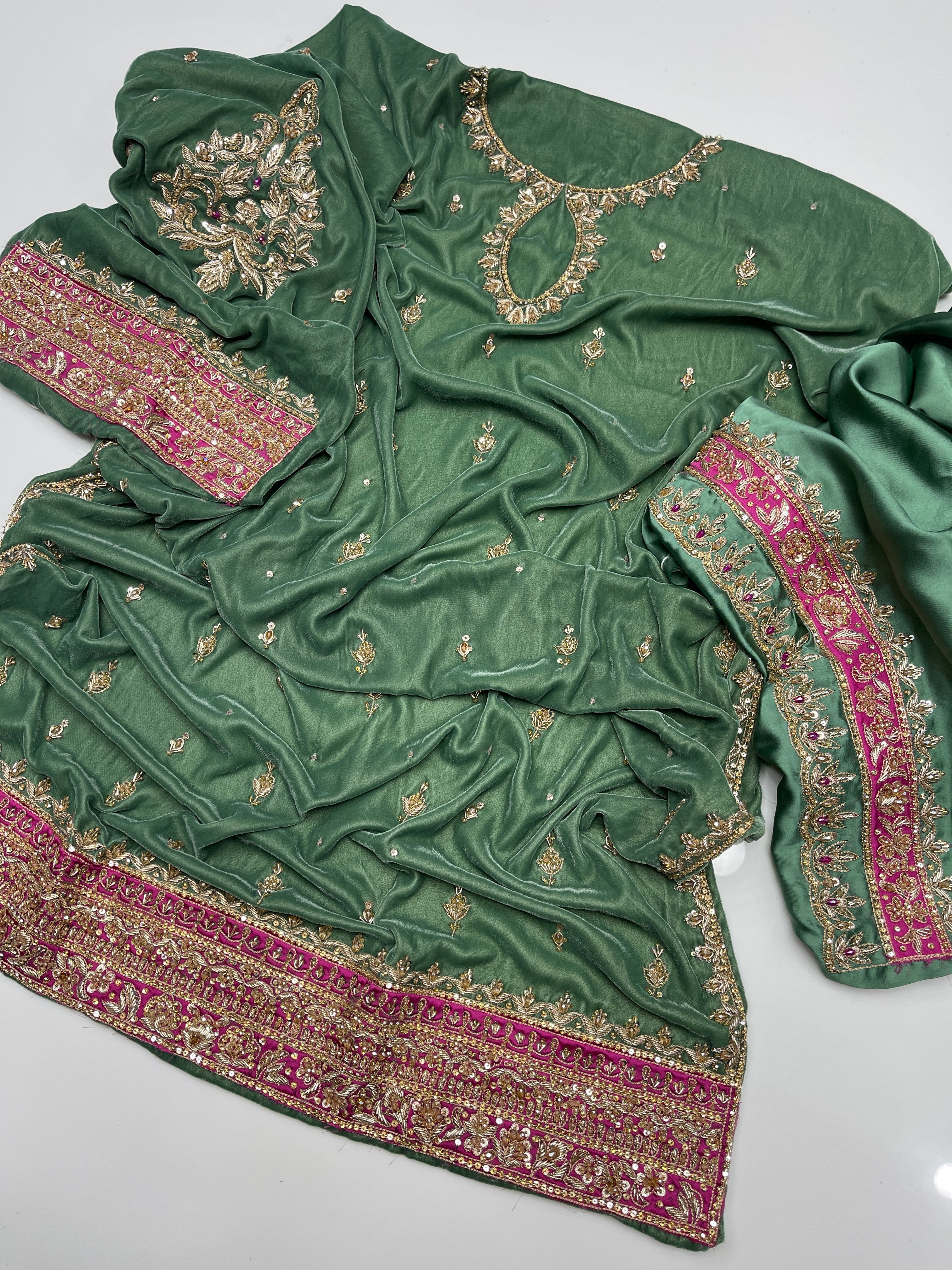 shirt : Velvet Zarri Dabka Work galla daman Moti beeds sitara heavy